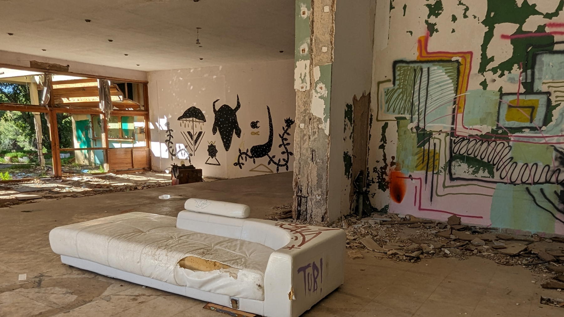 Das ehemalige Luxus-Hotel auf der Halbinsel Peloponnes im Süden Griechenlands wurde in den 1970ern erbaut. Es verfügte über 600 Betten, Bungalows, Sportanlagen, eine Strand-Disco und ein Amphitheater.
