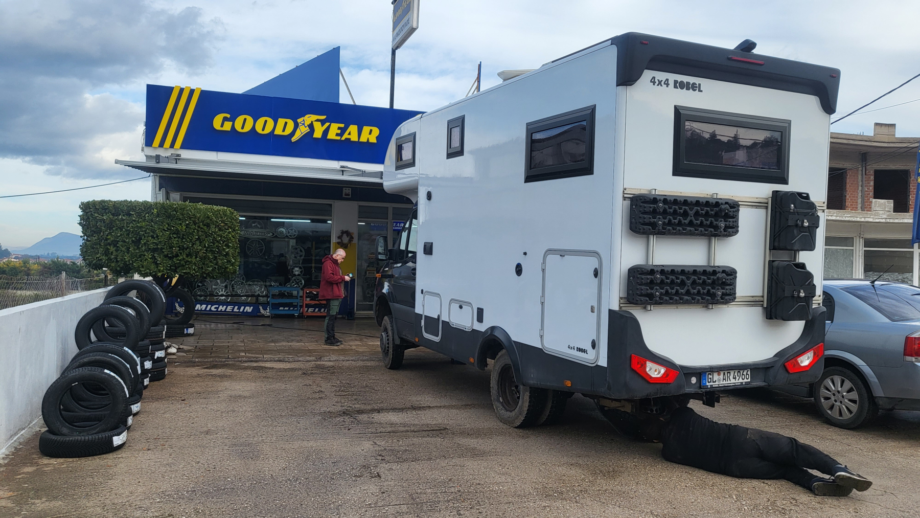 11 Uhr Termin beim Reifenhändler - unser Reifen ist angekommen