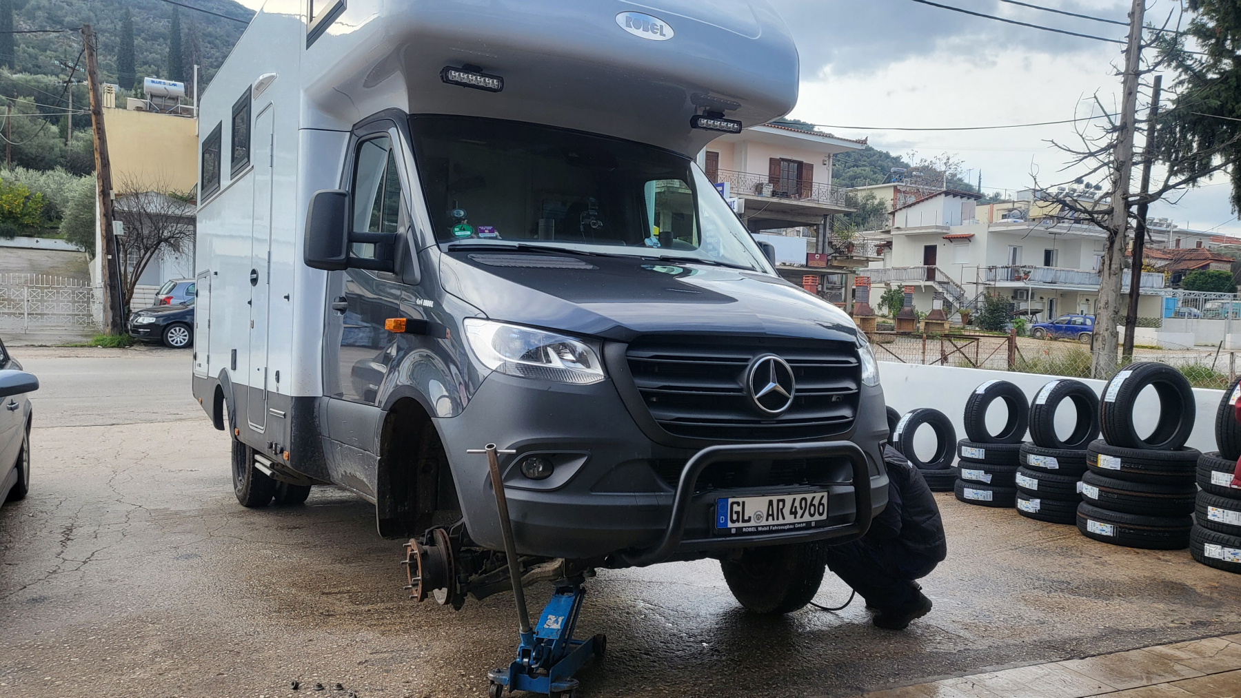 Nach einem Abstecher zu den Dolinen von Didima geht es nach Nafplion. Wir wollen am Montag endlich ein neues Reserverad. Im Hafen staunen wir nicht schlecht. Über 40 Wohnmobile, teilweise zwischen LKW, stehen auf dem sehr weitläufigen Gelände verteilt. Wir stellen uns abseits mit einigen anderen auf die nicht betonierte Fläche.