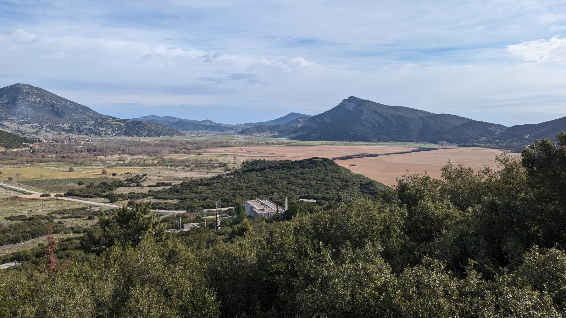 Blick über die stymphalische Ebene und den Stymphalischen See