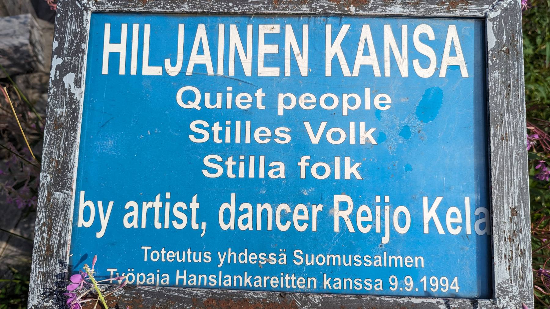 Bevor wir in den Oulanka Nationalpark fahren, geht es noch zu einem Kuriosum, bzw. einem Kunstwerk, was um die Welt ging, dem „Volk der Stille“. Neben den vielen Naturschönheiten, wie Stromschnellen, einsame Seen und Wald-/Sumpflandschaften fallen uns entlang der russischen Grenze die zahlreichen kleinen Denkmäler auf. Diese sollen an die vielen Opfer des Winterkrieges 1939/40 mit Russland erinnern. Hierbei verloren die Finnen große Teile ihrer Gebiete.