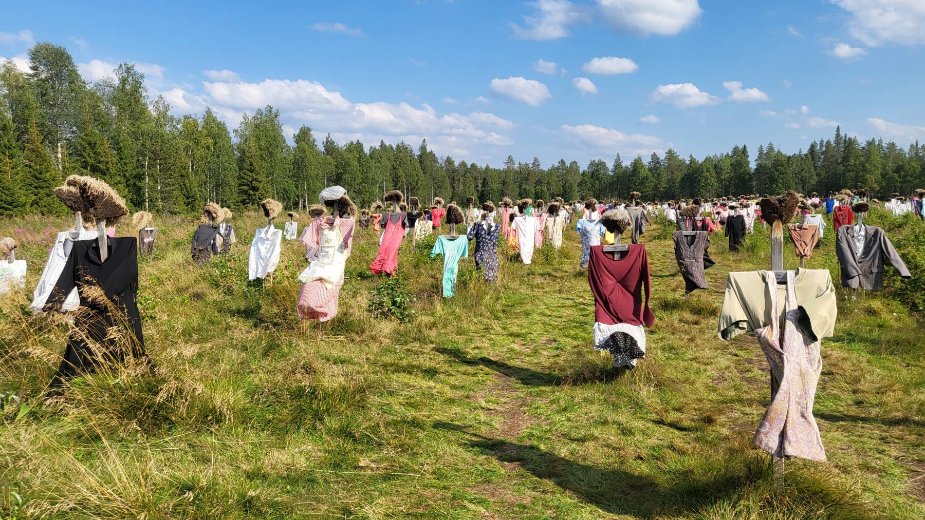 Bevor wir in den Oulanka Nationalpark fahren, geht es noch zu einem Kuriosum, bzw. einem Kunstwerk, was um die Welt ging, dem „Volk der Stille“. Neben den vielen Naturschönheiten, wie Stromschnellen, einsame Seen und Wald-/Sumpflandschaften fallen uns entlang der russischen Grenze die zahlreichen kleinen Denkmäler auf. Diese sollen an die vielen Opfer des Winterkrieges 1939/40 mit Russland erinnern. Hierbei verloren die Finnen große Teile ihrer Gebiete.