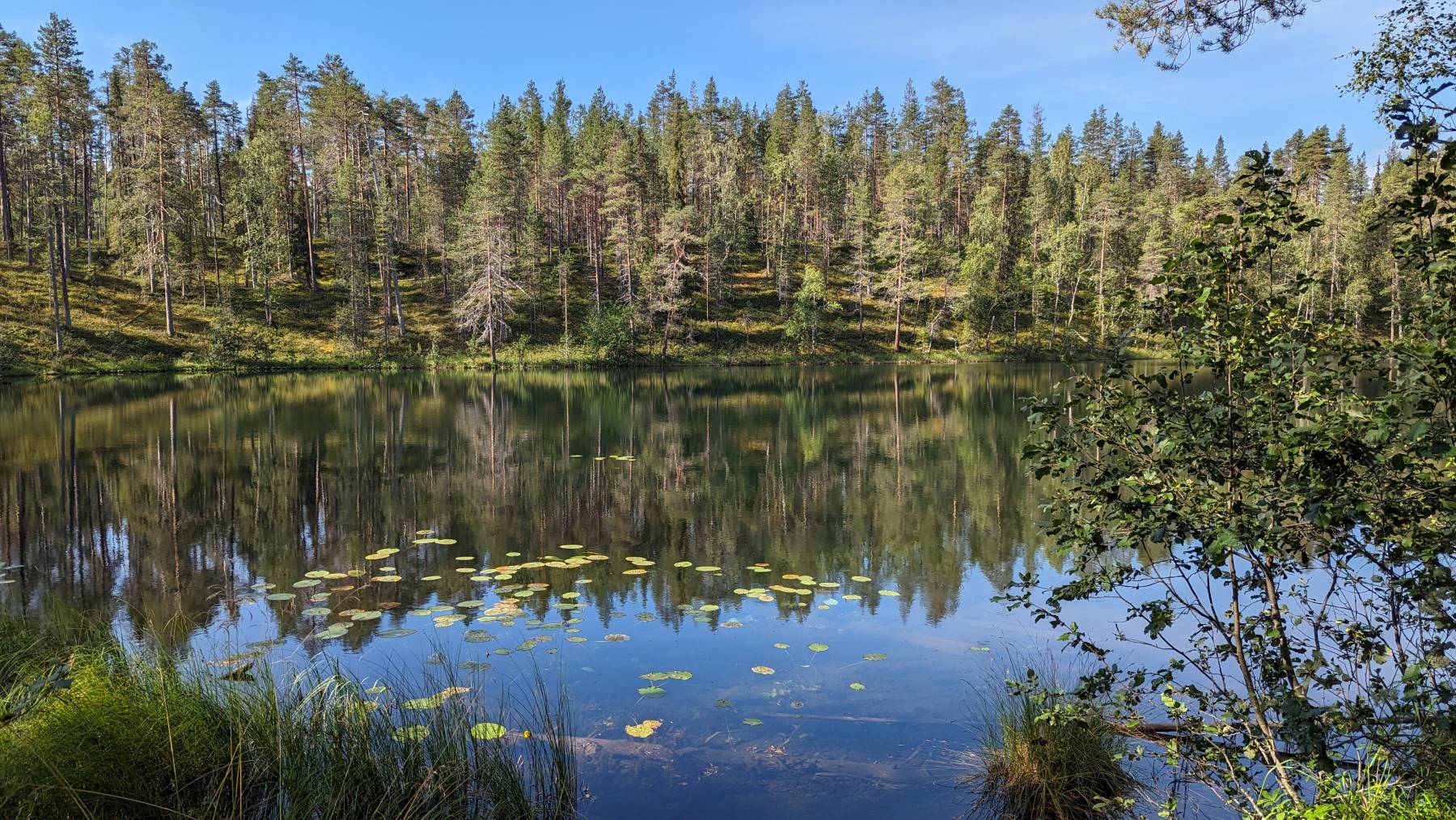 Die kleine und die große Bärenrunde zählen zu den bekanntesten Wanderungen Finnlands. Wir entscheiden uns spontan für die kleine mit 12 km – statt 82 km. Wir brechen um 9 Uhr auf und benötigen für die ausgesprochen schöne, aber auch sehr anstrengende Wanderung 5 Stunden bei schönstem Wetter. Wir machen alles richtig, es wird zunehmend voller und mit Ankunft zu Hause, fängt es an zu regnen. Nur Bären oder Elchen begegnen wir leider nicht.