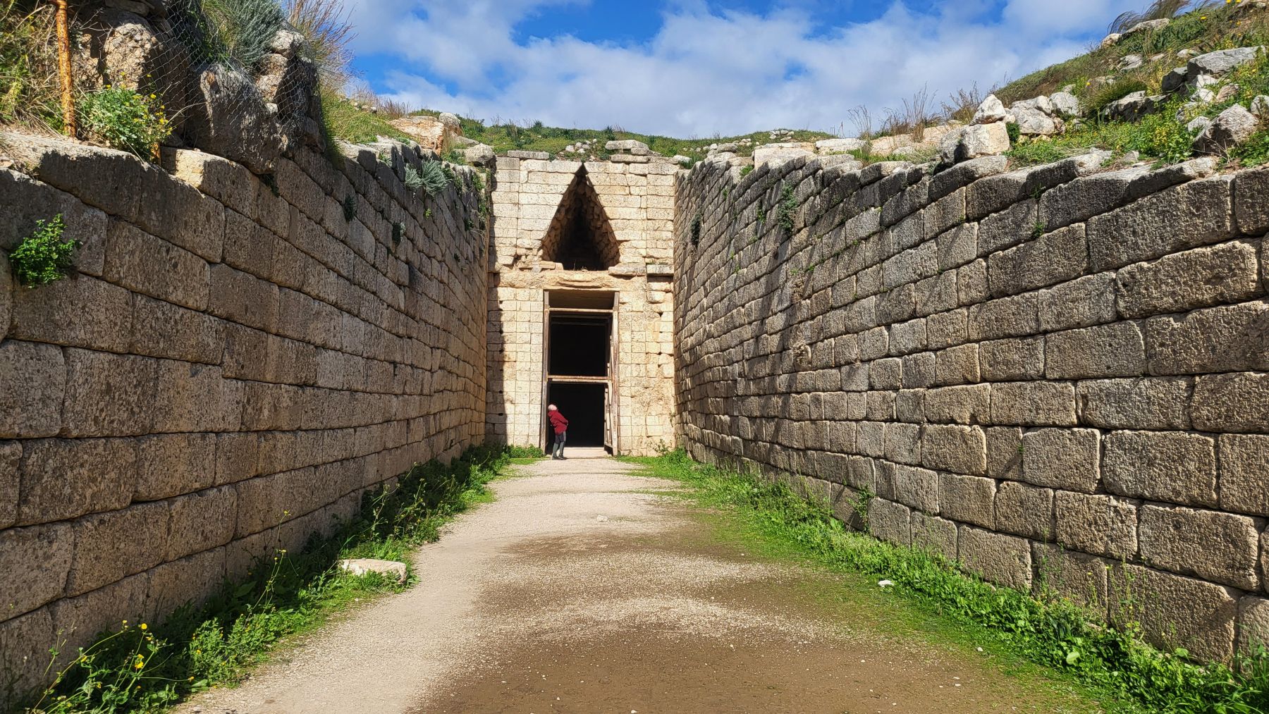 Der Sonntag ist mal wieder sehr stürmisch, bzw. häufig starke Böen. Nur 1,4 km von der antiken Ausgrabung Mykene entfernt verlassen das Auto gar nicht. Auch wenn wir diese Stätte mit dem berühmten Löwentor schon mal besucht haben, müssen wir sie jetzt doch noch einmal beehren. € 6,– Eintritt, mehrere Reisebusse mit Schülern und asiatischen Touristen und ein sehr sehenswertes neues – aus 2003 – Museum sind die ersten Eindrücke. Das Löwentor steht noch wie ich es aus den 70ern in Erinnerung hatte. Die Kuppelgräber sind aber auch sehr beeindruckend. Es hat sich gelohnt.
