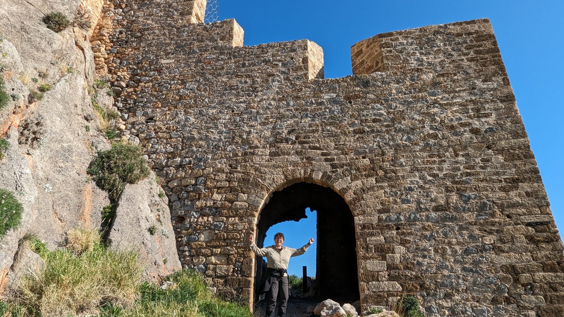 Also weiter bis Monemvasia, einer kleinen Insel mit Festung und mittelalterlicher Stadt, nur mit einem schmalen Damm mit dem Festland verbunden. Unter blauem Himmel erkunden wir die im Winter kaum bewohnte und wenig besuchte kleine Stadt – sehr sehenswert. Statt ganz zu Fuß hoch zur Festung, starten wir die Drohne.