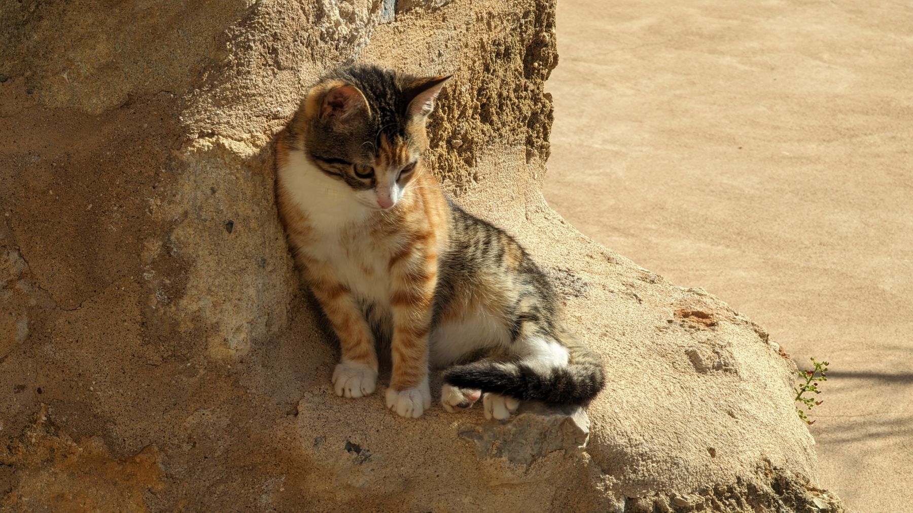 Der Stellplatz ist nicht unbedingt schlecht, mit Sicht auf die fotogene Felseninsel. Es fahren aber durchgängig Fischer an das Ende des Kais, Poser kommen. Miauende Katzen, bellende Hunde und sich fest eingerichtete Franzosen führen dann dazu, dass wir uns nicht wohl fühlen.