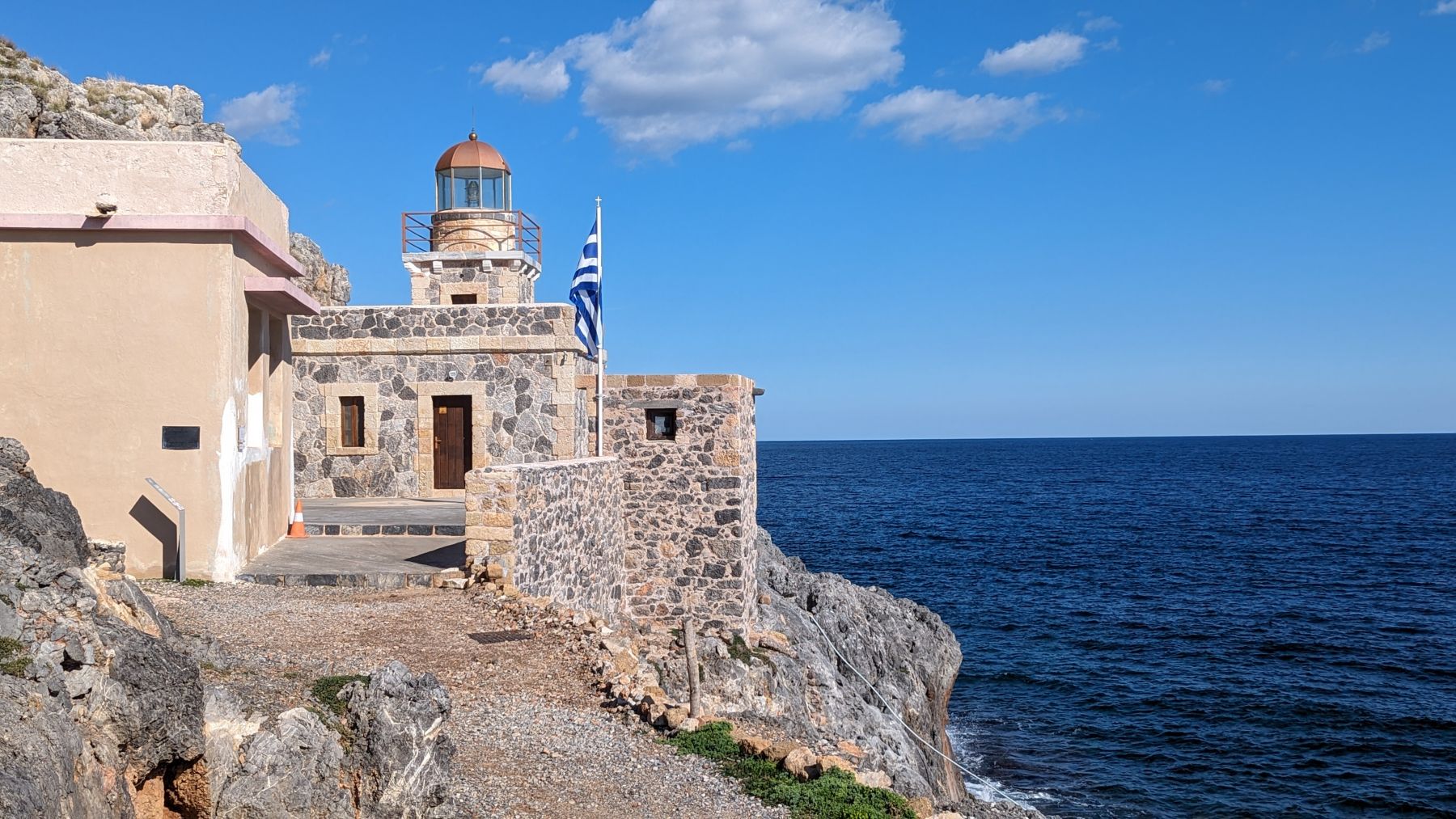 Also weiter bis Monemvasia, einer kleinen Insel mit Festung und mittelalterlicher Stadt, nur mit einem schmalen Damm mit dem Festland verbunden. Unter blauem Himmel erkunden wir die im Winter kaum bewohnte und wenig besuchte kleine Stadt – sehr sehenswert. Statt ganz zu Fuß hoch zur Festung, starten wir die Drohne.