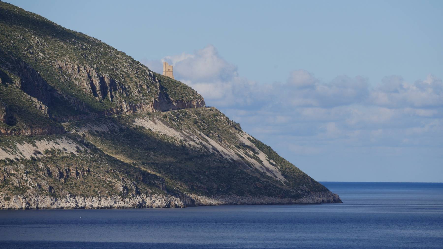 Im Nationalpark Zingaro kann man an der Küste eine schöne Wanderung machen. Der südliche Eingang liegt genau genommen in der nächsten Bucht, immerhin 41 km bis dorthin, um das Bergmassiv herum. Unterwegs versuchen wir noch den in fünf Tagen gesammelten Müll nach deutschen Sitten los zu werden. Nicht einfach, aber auf viele kleine Mülltonnen verteilt geht das irgendwie.