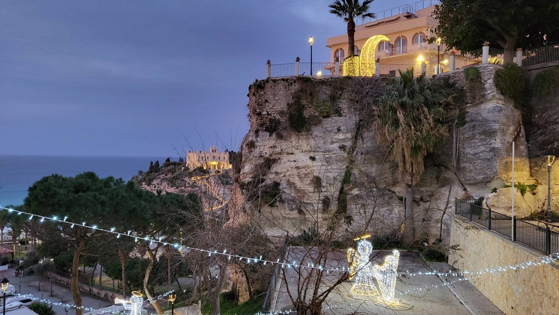 In Tropea gibt es in der Hauptsaison kaum Parkplatzmöglichkeiten. Bzw. sind sie auch teuer, € 3,– die Stunde von 0-24 Uhr, übrigens für alle. Im Winter hat man die Zahlungspflicht auf 9 bis 19 Uhr beschränkt. Wir finden den einzigen Platz für nur € 1,50/Stunde mit schönem Blick auf die Altstadt auf dem Felsen. Wir stehen alleine auf der Parkfläche für 40 Fahrzeuge, bis ein italienisches Wohnmobil sich genau 1m neben uns stellt. Er begrüßt uns freundlich, nach unserem Abendspaziergang, und fragt ob wir hier übernachten wollen. Ich bejahe das, setze mich ans Steuer und fahre 10m weiter weg. Kurze Zeit später fährt er hinfort. Wir konnten ihm wohl keine Sicherheit bieten 🤷.