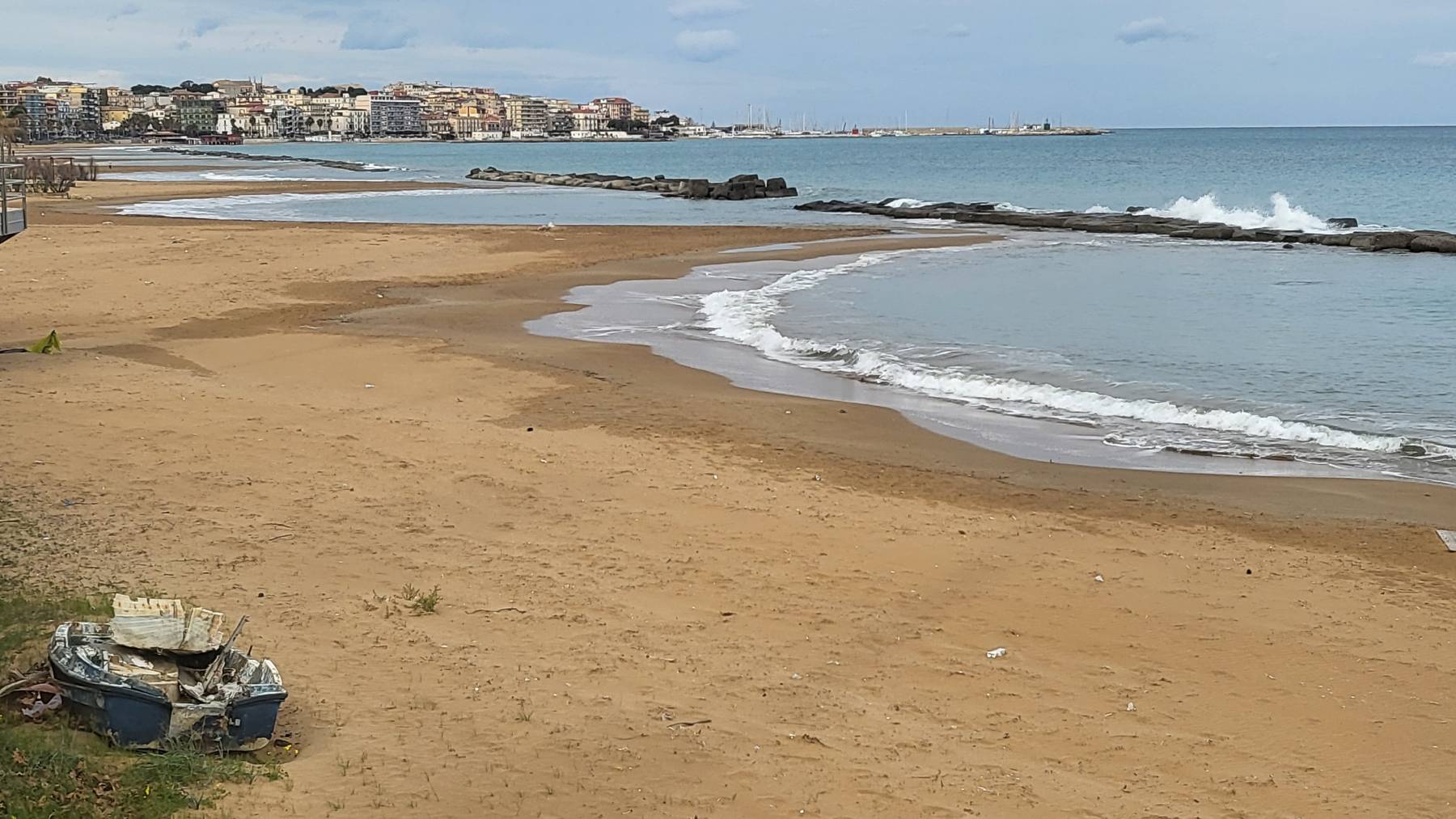 Hier kommen viele Italiener mit ihren PKW, gucken aufs Wasser und drehen eine Runde. Ein Rentner spricht uns an. Er hat in den Achtzigern mal in Deutschland für 6 Monate die Sprache gelernt. Auch wenn nicht mehr übrig ist kommt ein kleines Gespräch zustande. Wir sprechen ihn mehrmals auf den Müll in Italien an. Er sagt, dass das Meer in Italien sauberer als in Spanien ist und in Rom durch den Abrieb der Reifen ja viel Umweltverschmutzung ist. Die Italiener sehen den Müll nicht, sie wollen davon auch nichts hören.
