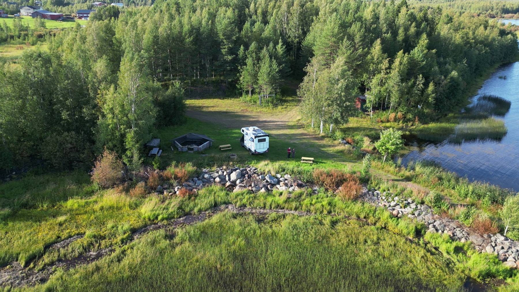 Schnell noch 20 cent günstiger in Finnland tanken und zum nördlichsten Ikea der Welt direkt hinter der Grenze. Ein sehr großer Bereich ist hier für Wohnmobile eingerichtet. Letztes Jahr haben wir hier übernachtet, war aber extrem laut durch sehr viele norwegische Camper. Auch dieses Jahr stehen hier riesige Liner und Wohnanhänger aus Norwegen. Wir kaufen eine Kleinigkeit bei Ikea und essen einen Hotdog. Das besondere hier ist, es gibt im normalen Laden keine Kassen, die von Menschen bedient werden. Auch im Shop davor alles selbst einscannen und natürlich nur mit Karte bezahlen. Den Hotdog müssen wir auch an großen Boards – wie bei McDonald – elektronisch ordern. Nur im Laden kommen dir die Mitarbeiter überall in die Quere, wie in Supermarkten ja auch, nur hier sehr freundlich…