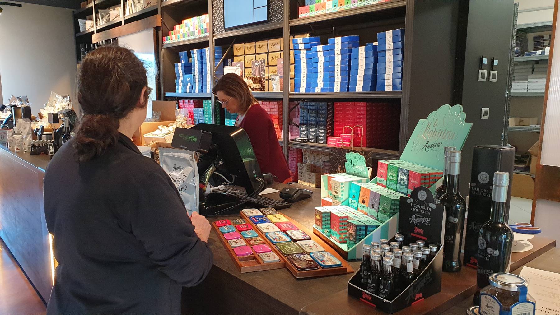 Heute scheint wieder die Sonne. Bevor wir aber noch die Küste weiterfahren, geht es wieder zu einem Produzenten: Nein, es geht zu keinem Weingut. Rossano stazione, der neuere Teil unterhalb des Berges der Altstadt Rossanos gelegen, ist  die Heimat eines sehr bekannten Lakritzherstellers, Amarelli seit 1731. Ich verabscheue Lakritz, wie auch Anis. Anette zwingt mich aber zum Umweg von einem Kilometer 😉, besucht den Shop zweimal und wirft unsere ganzen Ersparnisse zum Fenster raus…