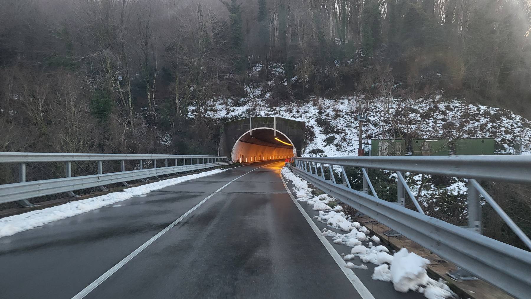 Wir sind jetzt in der Basilikata und wollen wieder auf die anders Seite. Das Ziel ist Apulien. Dafür müssen wir über die Berge. Jetzt merken wir, dass es Winter ist bzw. dieses Jahr es auch hier ausnahmsweise starke Schneefälle gegeben hat. Schon bei 300 m Höhe nimmt der Schnee zu, sodass auf 900 m Höhe eine Schneedecke bei 30 cm liegt. Zu unserer Überraschung sind die Straßen sehr gut geräumt, nur durch die Schneemassen enger. Hinter der Bergkette verschwindet der Schnee auf der Südseite vollends. Es sind für die kommenden Tage aber starke Regenfälle angesagt. Wir finden einen großen Asphaltplatz an einem Strand am Golf von Tarent. Wir sind überrascht: Das Parken ist im Grunde verboten, hier stehen aber sechs, teilweise sehr große Wohnmobile aus Deutschland. Und hier ist ein feiner sehr langen Sandstrand  –  völlig müllfrei 🤩.