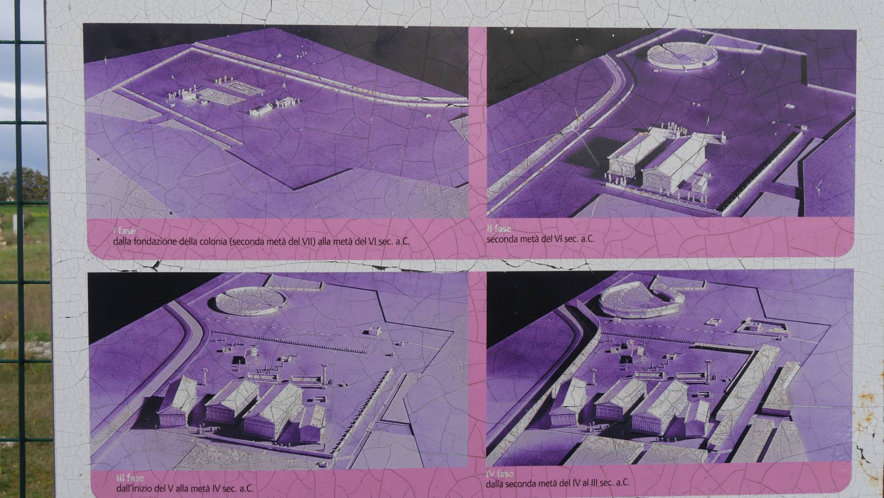 Ein älteres Ehepaar mit einem Weinsberg (teilintegriertes Wohnmobil) unterwegs nach Sizilien spricht uns an und möchte einiges über unser Fahrzeug wissen. Wir hinterlassen ein wenig Neid und kommen erst Mittags weg. Wir wollen und die Ausgrabung von Metaponto anschauen, wieder griechische Hinterlassenschaften. Ein sehr großes Areal, kostenlos, aber geschlossen, bis auf den Hera-Tempel. Es ist schon wieder Nachmittag. Es wird jetzt erst um 17 Uhr dunkel, so fahren wir wieder an den Golf von Tarent zu einem Platz am Meer.