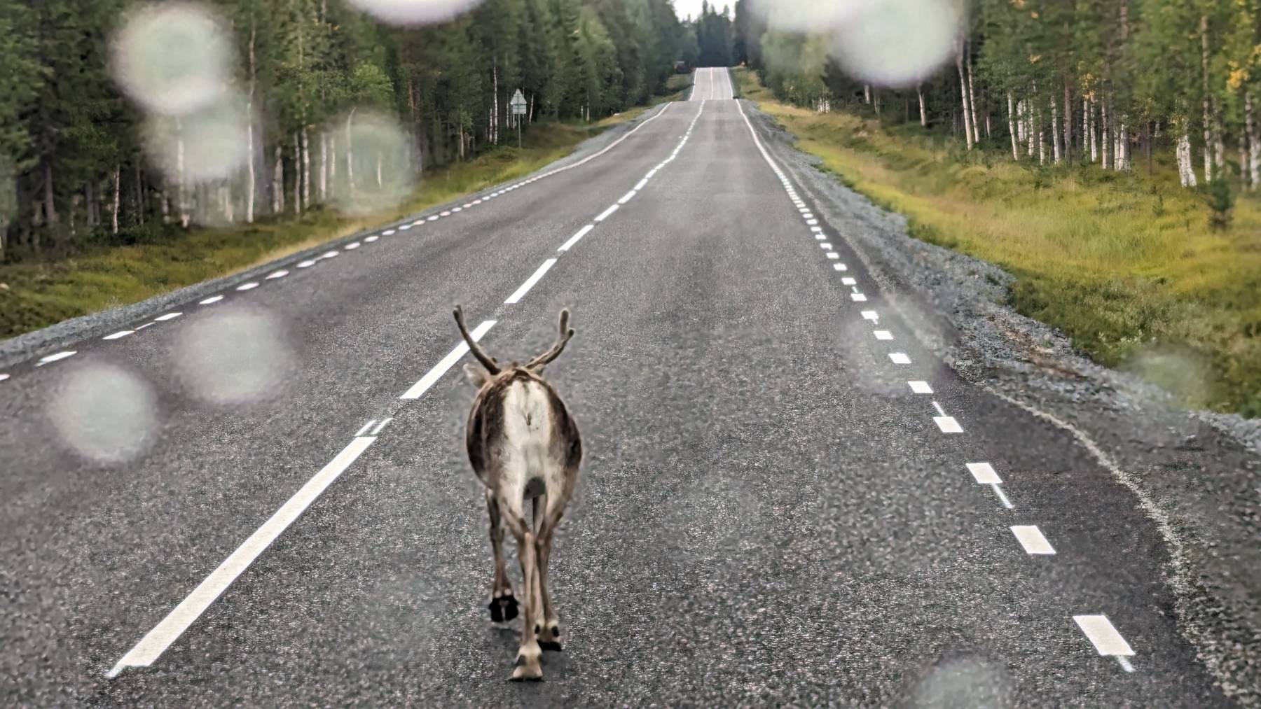 Ein normaler Tag. Nach dem Frühstück kehren wir das Auto aus und schicken die Drohne hoch für ein Stellplatzfoto. Drohne ist schon draußen, also ein Folgevideo von unserer Fahrt durch die Wald- und Seenlandschaft. Wir fahren zu einer Tanksäule an der Straße und tanken für exklusive € 2,08/l. Im kleinen Lebensmittelladen nebenan kaufen wir neben Margarine, Weißbrot und eine Erdbeermarmelade für ebenfalls exklusive € 8,75. Auf der Straße entdeckt Anette plötzlich einen Elch neben der Straße – unser Erster dieses Jahr. Teleobjektiv drauf und Drohne hoch, mal testen ob man so rankommt, ohne das Tier zu stören oder es im Wald verschwindet. Ein paar Kilometer weiter eine Herde Rentiere. Da kann man mal die Drohne raus holen… Es wird Zeit für eine Pause und wir steuern einen schönen Rastplatz am breiten Fluss an. Der Tag geht zu Ende.