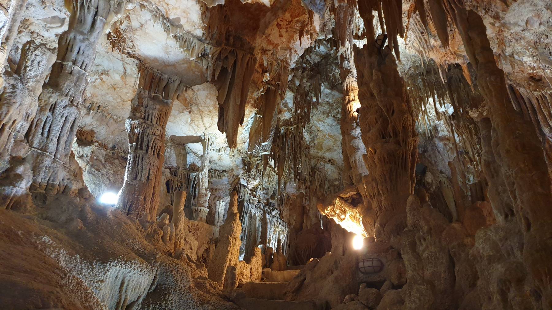 Ein sehr großes Gebiet hier im Norden Apuliens basiert auf einem einer großen Kalkhochebene, also nicht aus Gletschern oder Vulkanen entstanden. So existieren hier über 2.000 Höhlen und Grotten. Eine, die zweitälteste Grotte Italiens, die Höhle von Putignano besuchen wir. Eine kleine und nette Höhle. Wir bekommen eine individuelle Führung auf ItaloEnglischDeutsch – also fast nur auf Italienisch. Der Führer ist sehr nett und gibt sich sehr viel Mühe, hält alle paar Meter und versucht uns etwas zu erläutern – muss er ja auch, die Grotte ist so klein, sonst wären wir in 5 Minuten wieder draußen. Wir finden die € 7,– /p.P. überteuert.