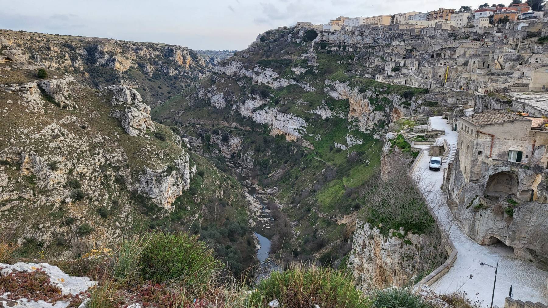 Auf dem Weg zum Altamura-Mann (hier zu wikipedia verlinkt) füllen wir unseren Weinvorrat noch auf einem Bioweingut auf. Ja, der Altamura-Mann, ein ca. 30 Jahre alter Mann, dort seit 130.000 Jahre eingeschlossen von Stalaktiten und Stalagmiten, wurde 1993 entdeckt. Man kann die Höhle, in der er heute noch liegt, nicht besuchen. In einem schönen 3D-Film und einem Museum wird uns aber alles sehr eindrucksvoll und leidenschaftlich von dem Mitarbeiter detailliert erklärt – auf ItaloEnglischDeutsch – wir waren auch hier die einzigen Besucher.