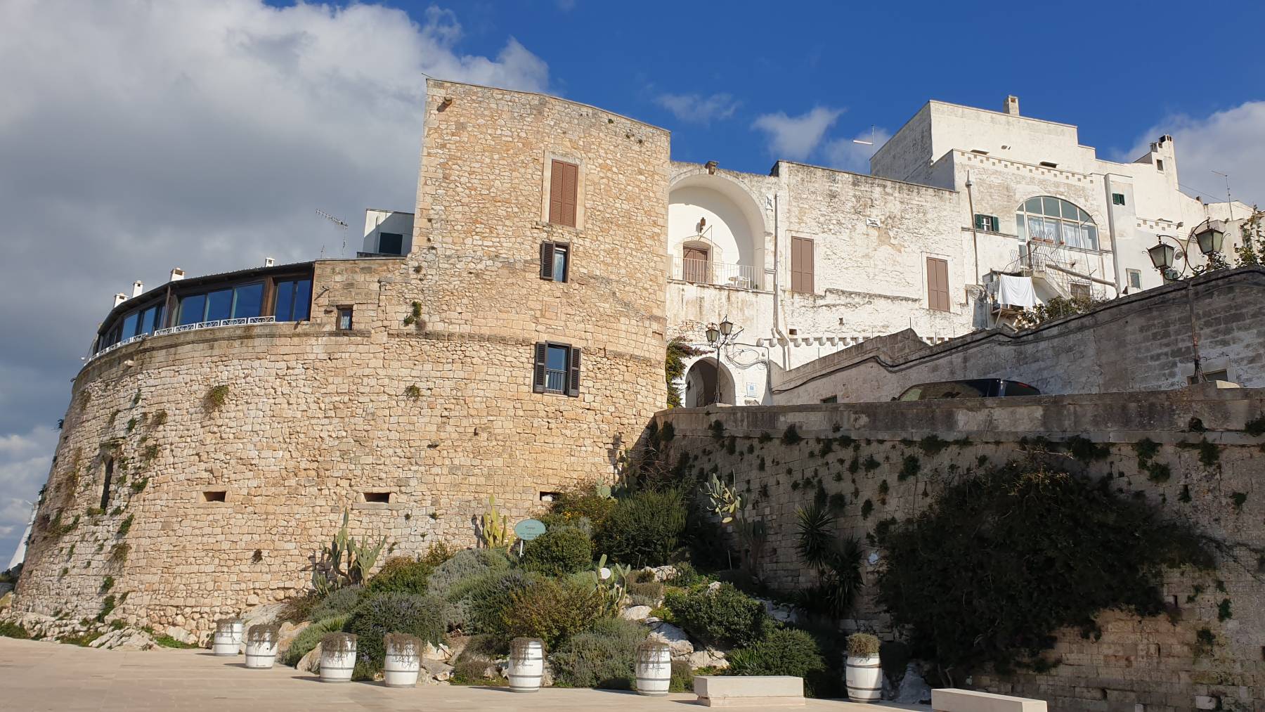 Brindisi umfahren wir weiträumig, sehr viel Industrie. Es gibt ein paar Orte im Landesinneren, die zu den schönsten Dörfern Italiens gezählt werden. Jedes für sich sehr sehenswert. In Cisternino begegnen wir zwei Dauerreisenden mit eigenem youtube Kanal (I Like Reisen – einfach mal reinschauen) und plaudern sehr nett bei ein paar Gläsern Rotwein kreuz und quer durch die Van und Reisewelt. Mal sehen, ob wir uns – bei ähnlichem Reiseplan – noch mal begegnen.