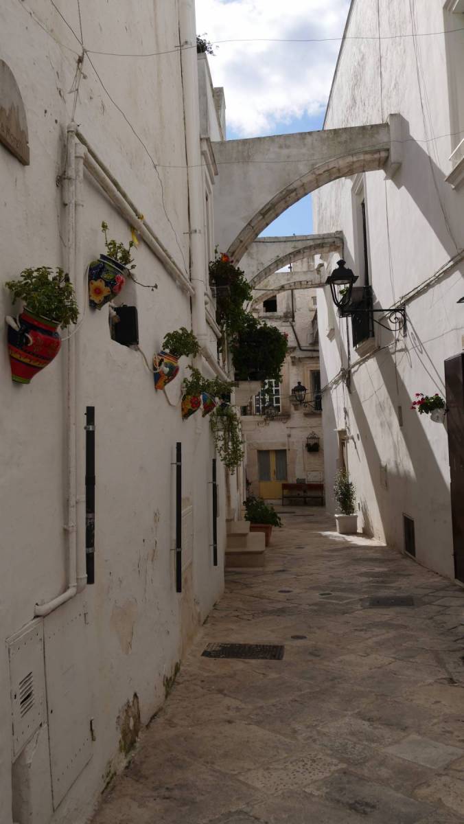 Wir befinden uns im Trulli-Land. Trullo (die Einzahl) bedeutet Kuppel und kommt aus dem Altgriechischen. Man ärgerte sich in diesem Gebiet vor langer Zeit über die Grundsteuer die an den König abgeführt werden musste. „Richtige“ Häuser wurden hoch besteuert und die kleinen, in dieser Region üblichen, Hirtenhütten nicht. Trulli wurden ursprünglich ohne Mörtel gebaut, weil man für Mörtellose Bauten keine Steuern zahlen musste, so ließen sie sich zur Not schnell wieder abbauen.