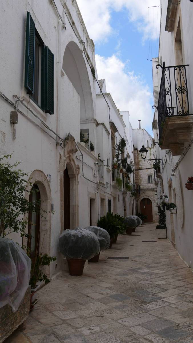 Wir befinden uns im Trulli-Land. Trullo (die Einzahl) bedeutet Kuppel und kommt aus dem Altgriechischen. Man ärgerte sich in diesem Gebiet vor langer Zeit über die Grundsteuer die an den König abgeführt werden musste. „Richtige“ Häuser wurden hoch besteuert und die kleinen, in dieser Region üblichen, Hirtenhütten nicht. Trulli wurden ursprünglich ohne Mörtel gebaut, weil man für Mörtellose Bauten keine Steuern zahlen musste, so ließen sie sich zur Not schnell wieder abbauen.