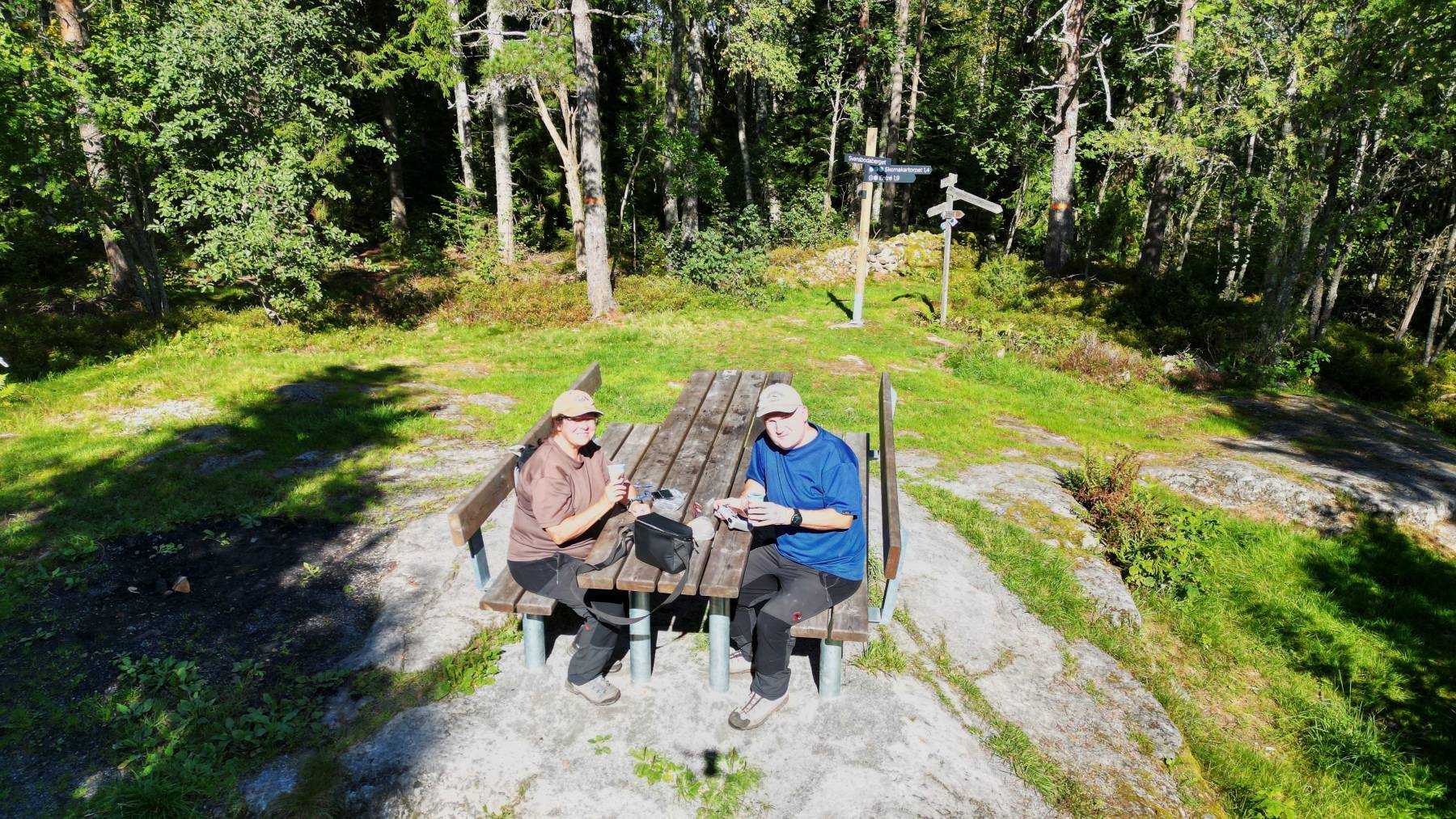 Wir wissen schon, dass der Tiveden Nationalpark gut besucht ist. Um 10 Uhr ist der PKW-Parkplatz schon halb voll und 10 Wohnmobile stehen im separierten Gebiet – übernachten ist im Nationalpark verboten. Es wird keine einsame Wanderung wie im Norden. Wir suchen uns über die App Komoot eine 9 km Wanderung aus und wundern uns, dass die längste offizielle Rundwanderung unter 7 km und dann mit 4 Stunden angegeben ist. Nach fast 5 Stunden merken wir völlig erschöpft, dass das ganz realistisch ist.