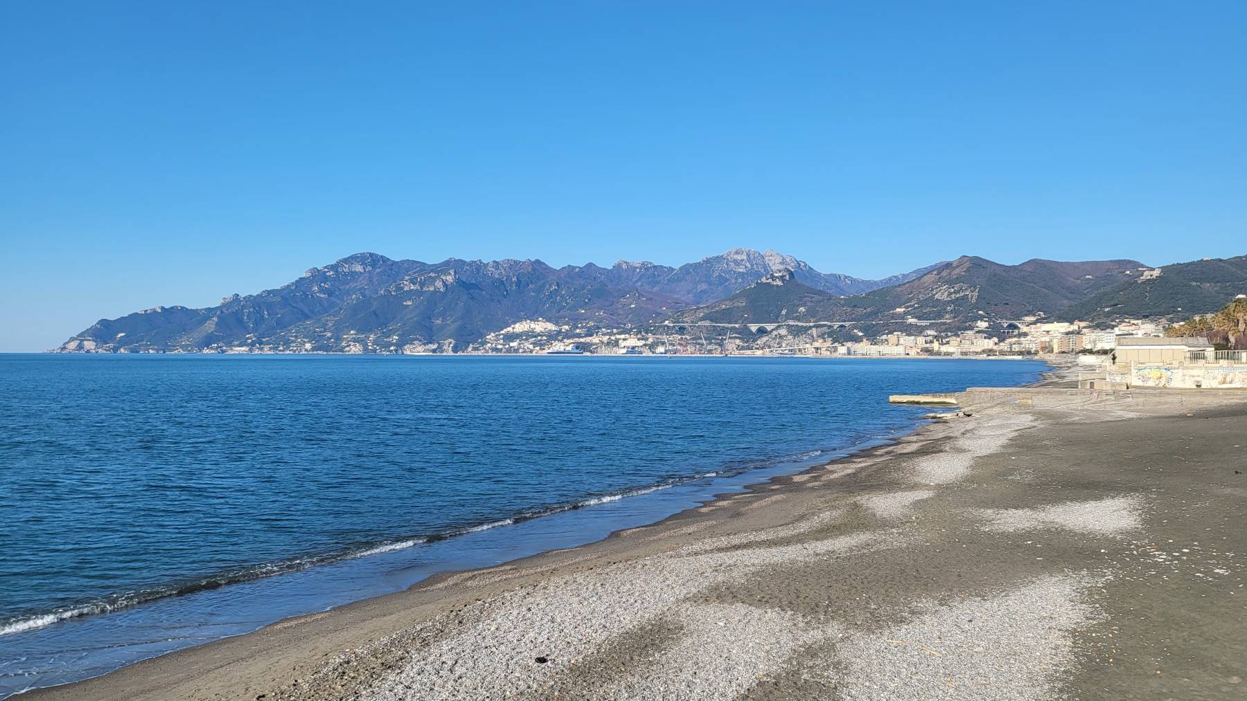 Das Wetter soll in den kommenden Tag wolkenfrei und um die 16 Grad warm sein. Wir möchten uns einen Eindruck von der so gerühmten Amalfiküste machen. In Salerno finden wir einen Wohnmobilstellplatz für € 10,–/24h. Der liegt zwar direkt an einer 4-spurigen Straße, dafür aber fußläufig von der City und Busbahnhof. Durch unsere hoch liegenden Fenster haben wir auch noch direkten Meerblick über die Mauer.