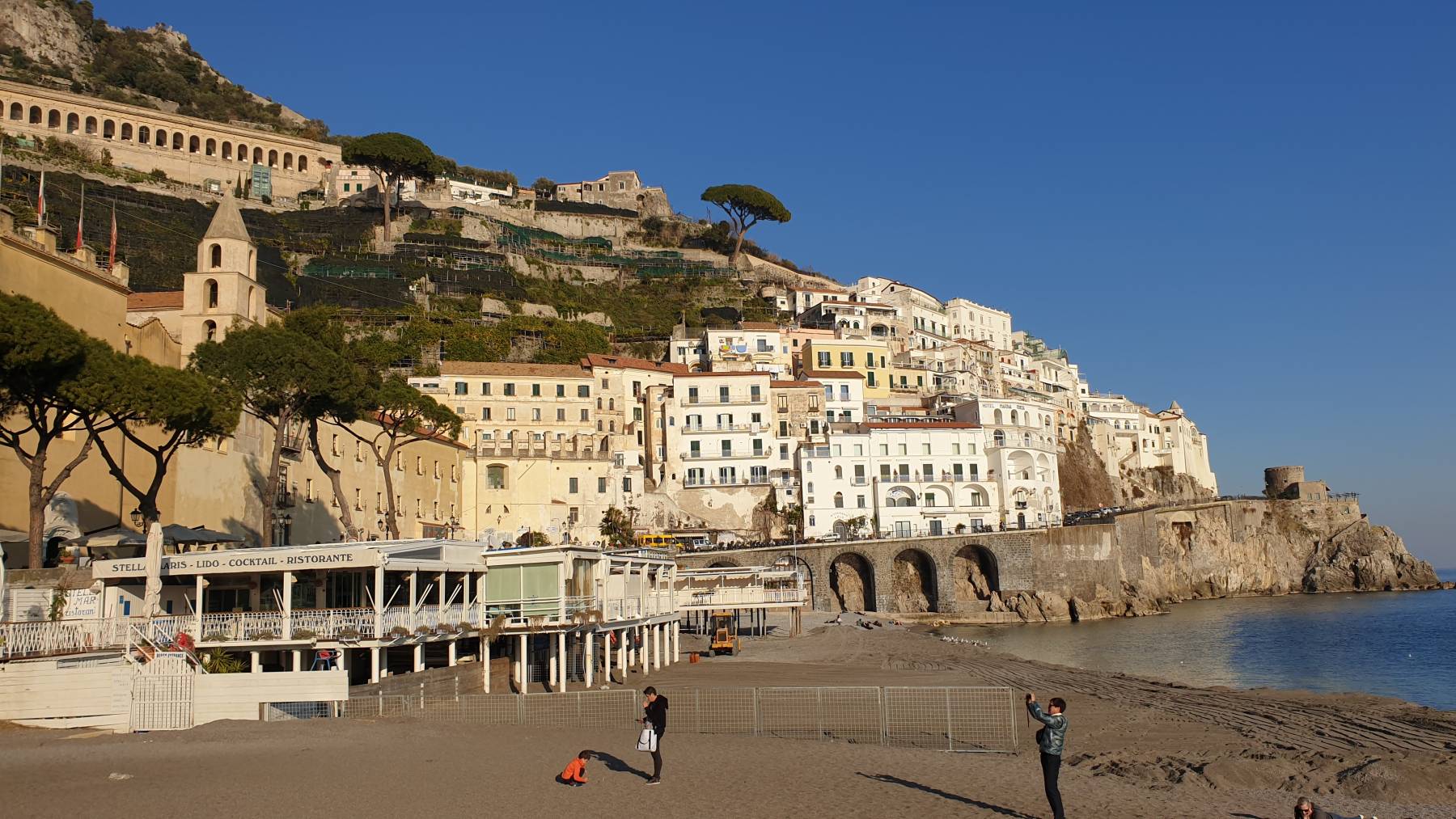An der Amalfiküste ist die Zufahrt für Wohnmobile untersagt, außer teilweise nachts. So kaufen wir uns ein Busticket nach Amalfi (€ 2,60 p.P.) . Die kurvenreiche Fahrt dauert bereits 1 h 20min. Zum noch edleren Positano wären es nochmal das gleiche zusätzlich gewesen. Für einen Eindruck geben wir uns aber mit der kurzen Tour zufrieden. Erschrocken sind wir von den doch zahlreichen Touristen aus den verschiedensten Ländern. Immerhin haben wir Mitte Februar!?