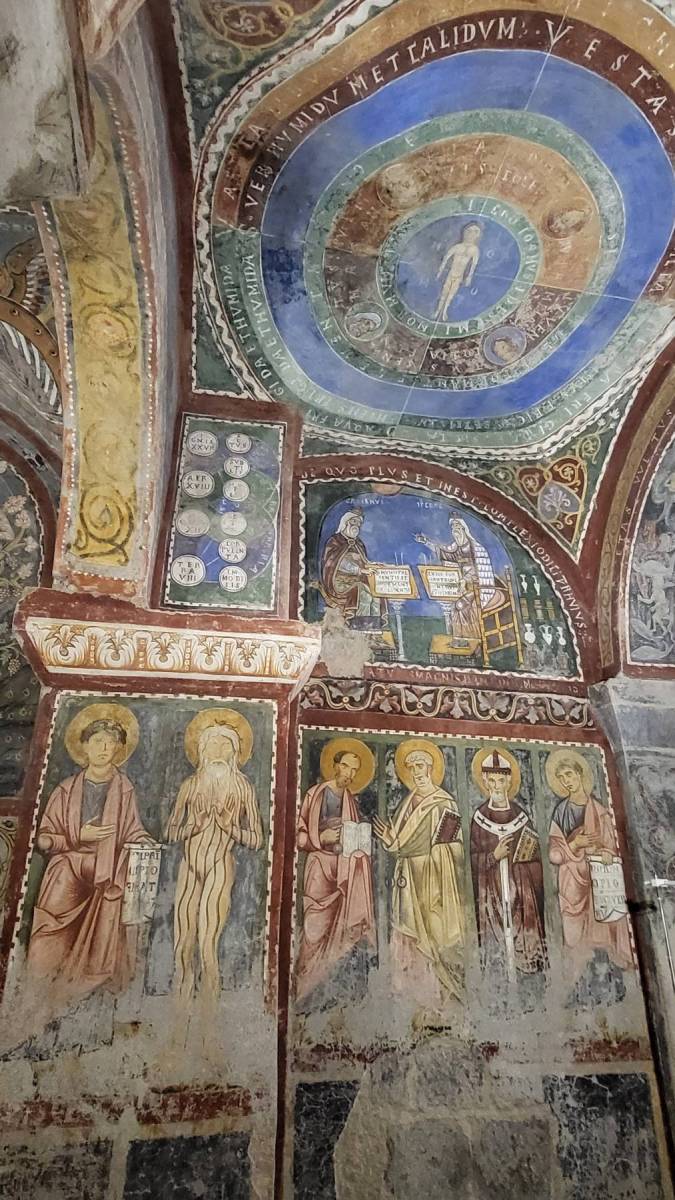 Wir wollen weiter und Anette hat noch ein kulturelles Highlight mit nah liegendem kostenlosem Wohnmobilstellplatz rausgesucht: Anagni, eine Residenz von Päpsten im Mittelalter. Das besondere hier ist die große Hallenkrypta des Doms, deren bedeutende Fresken zwischen 1231 und 1255 entstanden und noch vollständig erhalten sind. Wir werden ermahnt, sobald das nur zeitweise eingeschaltete Licht ausgeht, sofort die Krypta zu verlassen. Das Licht ging nicht aus, wir sind trotzdem gegangen. Die gesamte Krypta ist aber wirklich beeindruckend.