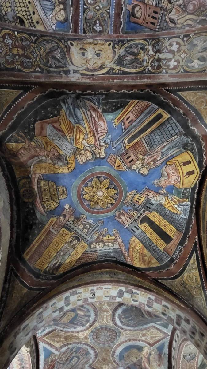 Wir wollen weiter und Anette hat noch ein kulturelles Highlight mit nah liegendem kostenlosem Wohnmobilstellplatz rausgesucht: Anagni, eine Residenz von Päpsten im Mittelalter. Das besondere hier ist die große Hallenkrypta des Doms, deren bedeutende Fresken zwischen 1231 und 1255 entstanden und noch vollständig erhalten sind. Wir werden ermahnt, sobald das nur zeitweise eingeschaltete Licht ausgeht, sofort die Krypta zu verlassen. Das Licht ging nicht aus, wir sind trotzdem gegangen. Die gesamte Krypta ist aber wirklich beeindruckend.