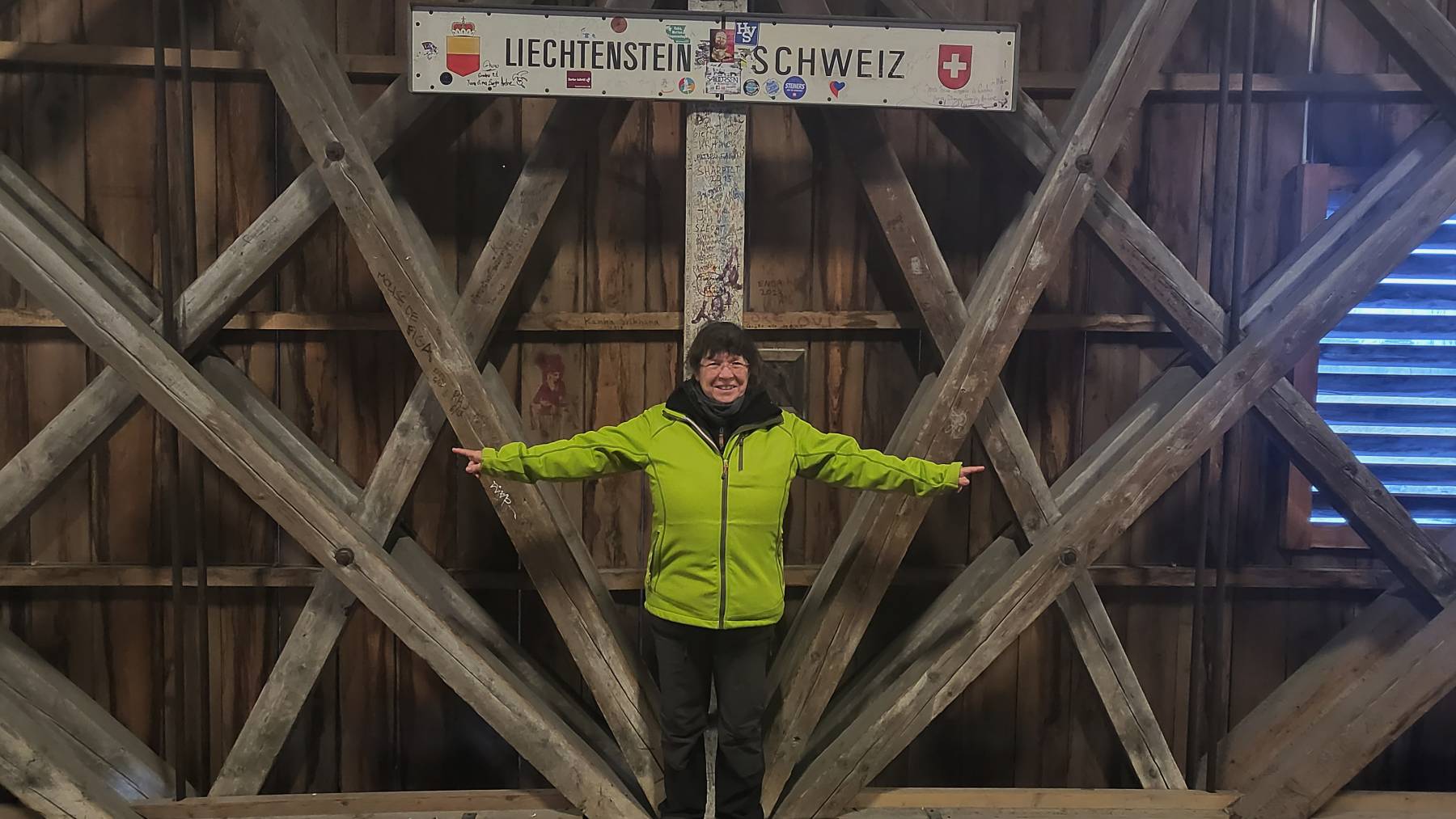 In Vaduz darf man auf dem Parkplatz des Stadions auch über Nacht stehen, für € 5,–. In dem Ort soll es nicht viel zu sehen geben, das Schloss kann man nicht besichtigen, da die Fürstenfamilie dort lebt. Die Erwartung ist also nicht hoch. Unser Spaziergang geht dann aber an der alten Rheinbücke vorbei, durch die mit Luxusgeschäften gespickte City insgesamt über 14 km hoch zu zwei Aussichtsplattformen. Bei Sonnenschein und 9 Grad ein lohnenswertes Ziel.