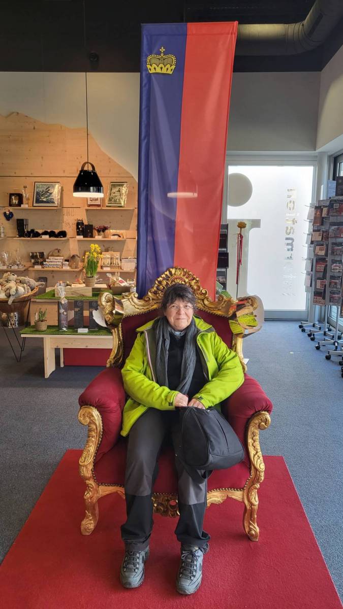 In Vaduz darf man auf dem Parkplatz des Stadions auch über Nacht stehen, für € 5,–. In dem Ort soll es nicht viel zu sehen geben, das Schloss kann man nicht besichtigen, da die Fürstenfamilie dort lebt. Die Erwartung ist also nicht hoch. Unser Spaziergang geht dann aber an der alten Rheinbücke vorbei, durch die mit Luxusgeschäften gespickte City insgesamt über 14 km hoch zu zwei Aussichtsplattformen. Bei Sonnenschein und 9 Grad ein lohnenswertes Ziel.