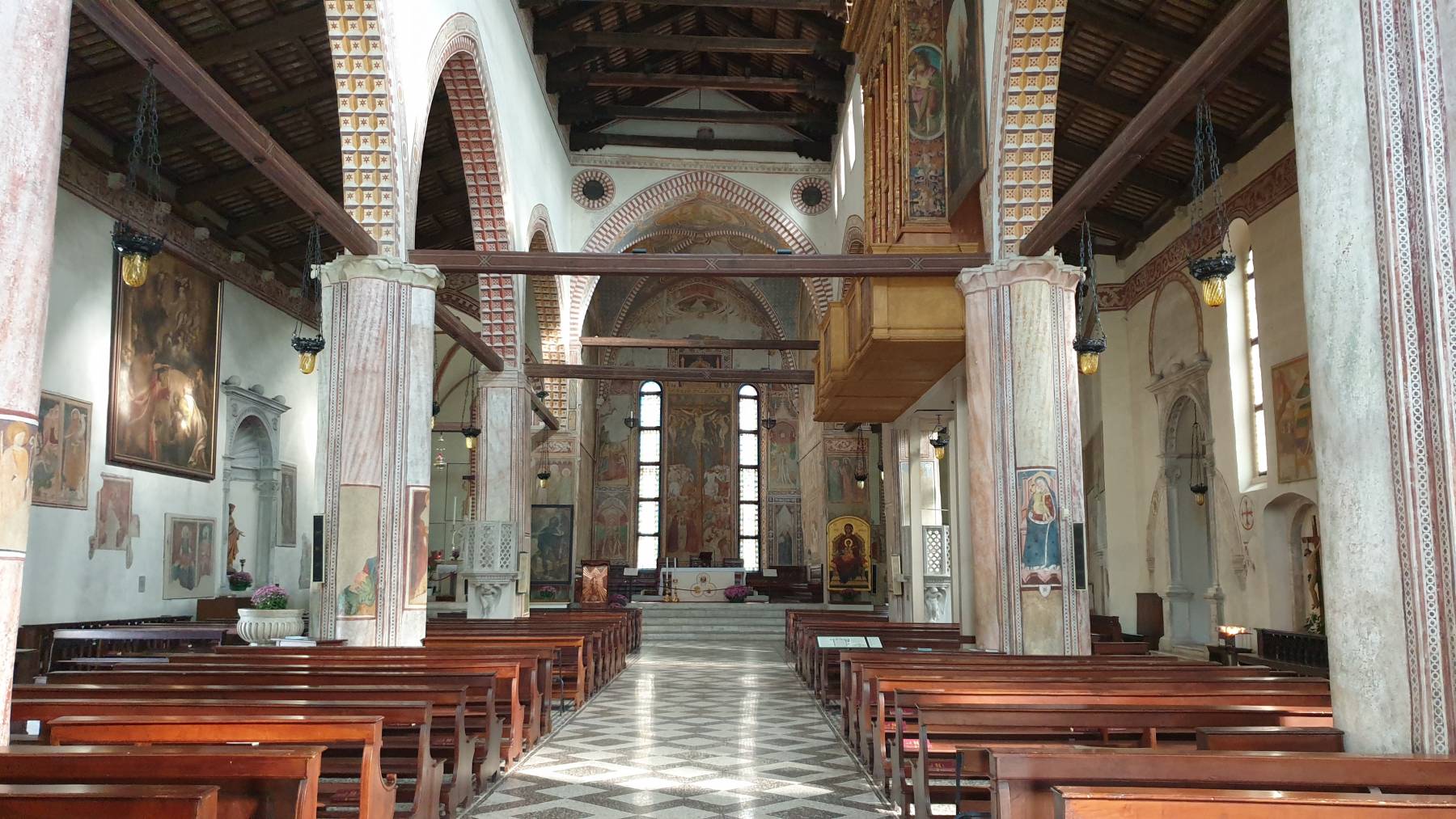 So geht es weiter über die Kleinstadt der Mosaike Spilimbergo nach San Daniele, der Stadt des besonders zarten Schinkens. Der Dom aus dem 13. Jahrhundert beeindruckt uns in Spilimbergo wirklich. Wir können uns zudem ein Video mit Erklärungen auf Deutsch auf dem Handy angucken. Das macht die Besichtigung doch um einiges interessanter. Die dortige bekannte Mosaikschule ist aber sehr hässlich. Man kann im Ort nur einige wenige Mosaike entdecken und er ist auch nicht wirklich besonders sehenswert.