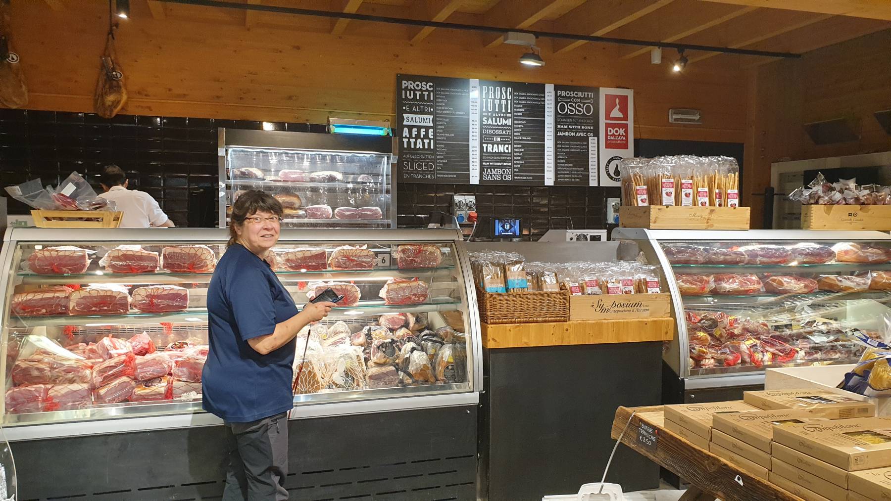 In San Daniele könnte man in unzähligen Schinkenmanufakturen Schinken verkosten und kaufen. Wir beschränken uns auf zwei und bleiben auf dem kostenlosen Stellplatz.