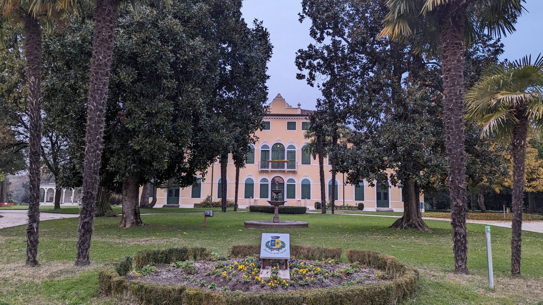 Wir verlassen das Trentino und steuern ins Friaul. An der Villa Manin können wir, wie so oft in Norditalien, kostenlos und ruhig stehen. Gut, ruhig stehen, das gilt nur für nachts. Ab 9 Uhr machen hier Düsenjets direkt über uns ihre Übungen. Interessant anzuschauen, aber auch sehr laut. Und sehr ärgerlich, wenn man mit der Drohne fliegen möchte. Wir wollten unbedingt eine Luftaufnahme von der Villa (Aufnahmen von Villa und Umgebung siehe Woche 1 – 31.10. bis 05.11.22 ). Wir starten die Steuerung und Drohne – aber nix geht: Startverbot. Da denkt der Laie, da fliege ich doch einfach trotzdem. Denkste! Die Drohne bewegt sich keinen Millimeter von der Erde. Erst als Anette das Fluggerät in die Hände nimmt und wir uns versuchen aus der Verbotszone zu entfernen, bekommen wir laufend die Warnmeldung: „Achtung! Verlassen Sie sofort diese Zone!“. Anette „fliegt“ also mit der Drohne in der Hand durch die Verbotszone… Wir staunen nicht schlecht, was technisch alles möglich ist.