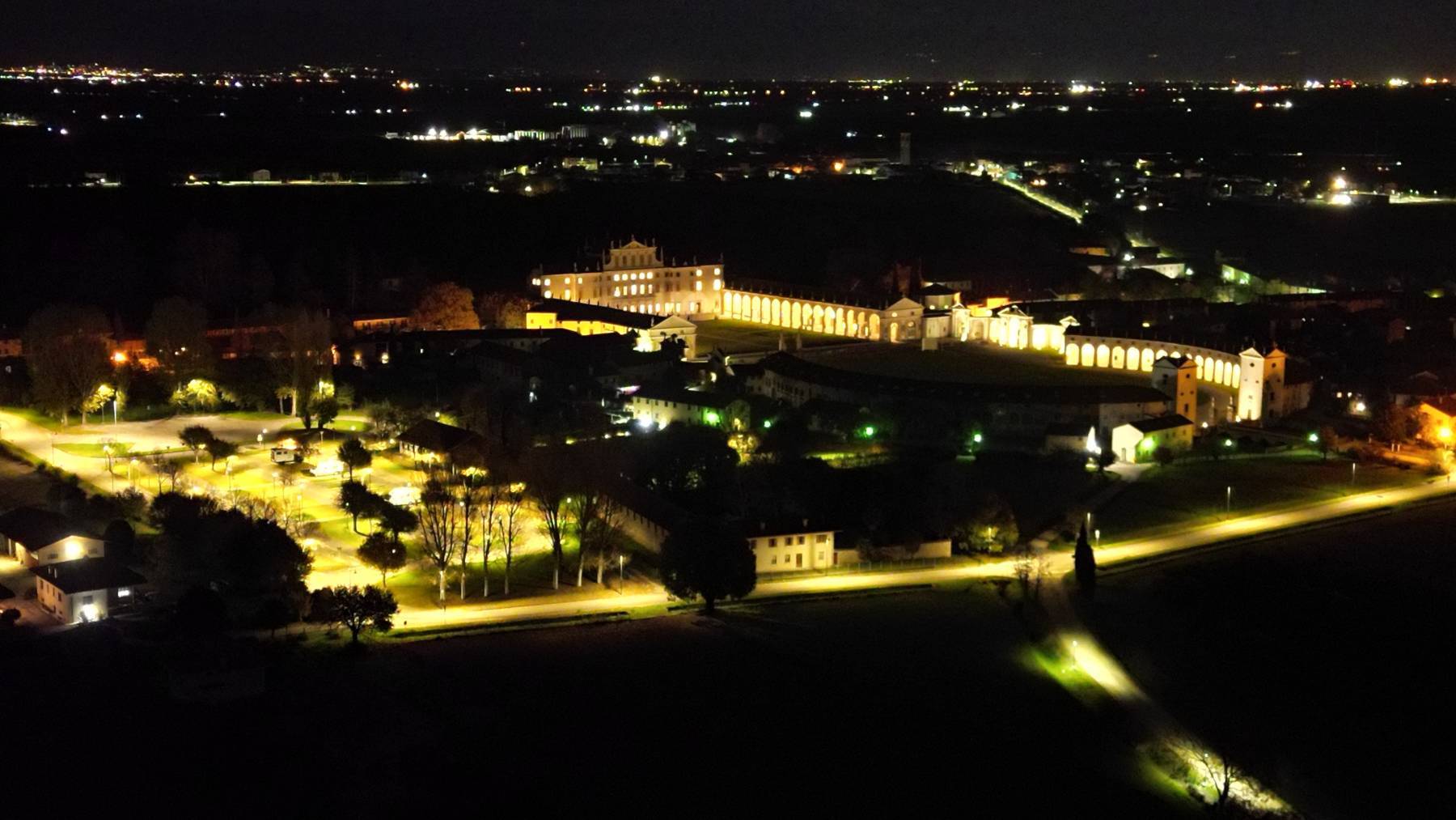 Wir verlassen das Trentino und steuern ins Friaul. An der Villa Manin können wir, wie so oft in Norditalien, kostenlos und ruhig stehen. Gut, ruhig stehen, das gilt nur für nachts. Ab 9 Uhr machen hier Düsenjets direkt über uns ihre Übungen. Interessant anzuschauen, aber auch sehr laut. Und sehr ärgerlich, wenn man mit der Drohne fliegen möchte. Wir wollten unbedingt eine Luftaufnahme von der Villa (Aufnahmen von Villa und Umgebung siehe Woche 1 – 31.10. bis 05.11.22 ). Wir starten die Steuerung und Drohne – aber nix geht: Startverbot. Da denkt der Laie, da fliege ich doch einfach trotzdem. Denkste! Die Drohne bewegt sich keinen Millimeter von der Erde. Erst als Anette das Fluggerät in die Hände nimmt und wir uns versuchen aus der Verbotszone zu entfernen, bekommen wir laufend die Warnmeldung: „Achtung! Verlassen Sie sofort diese Zone!“. Anette „fliegt“ also mit der Drohne in der Hand durch die Verbotszone… Wir staunen nicht schlecht, was technisch alles möglich ist.