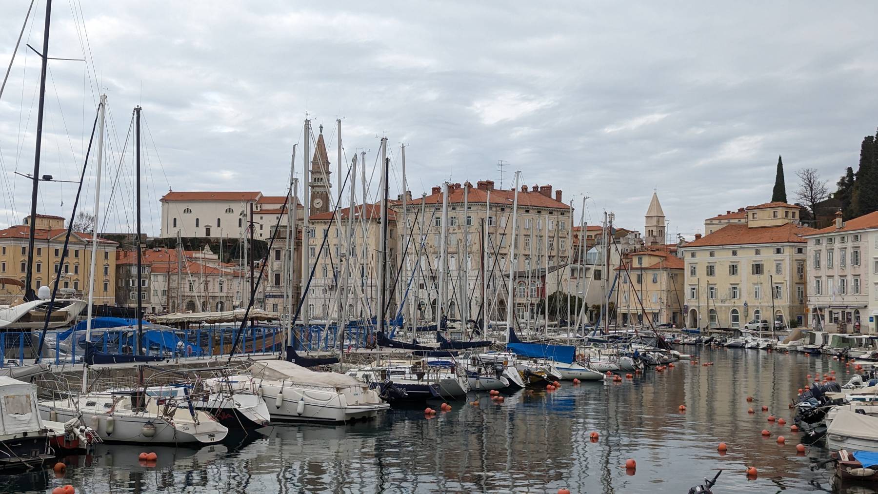 Piran hat für uns da schon mehr Charme. Die Altstadt liegt auf der spitz zulaufenden Landzunge. Wir lassen das erste Mal die Drohne fliegen.