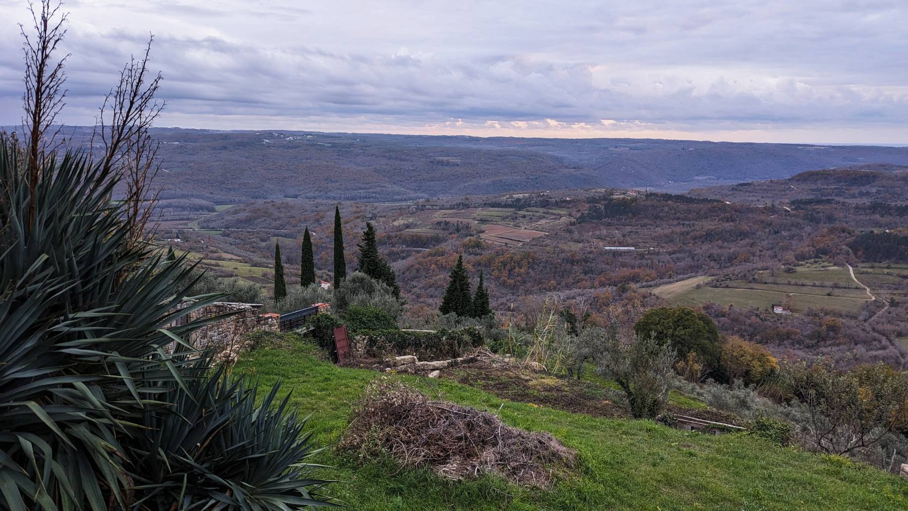 Die Slowenische Küste ist sehr kurz, so sind wir schnell in Kroatien. Groznjan, ist eines von vielen mittelalterlichen Bergdörfern, die Mitte des 20. Jahrhunderts verlassen worden sind. Hier haben sich Künstler niedergelassen und haben den Ort sehr schön renoviert. Gut, jetzt im Winter ist er wieder sehr verlassen, aber schön anzusehen. Hier bleiben wir auch auf einem im Winter kostenlosen Parkplatz.