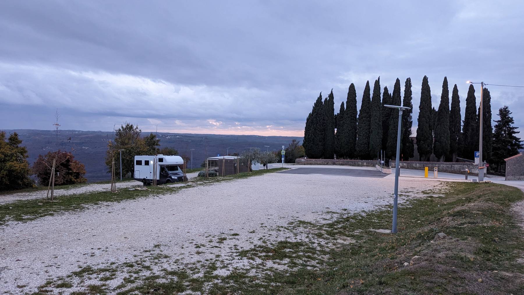Die Slowenische Küste ist sehr kurz, so sind wir schnell in Kroatien. Groznjan, ist eines von vielen mittelalterlichen Bergdörfern, die Mitte des 20. Jahrhunderts verlassen worden sind. Hier haben sich Künstler niedergelassen und haben den Ort sehr schön renoviert. Gut, jetzt im Winter ist er wieder sehr verlassen, aber schön anzusehen. Hier bleiben wir auch auf einem im Winter kostenlosen Parkplatz.