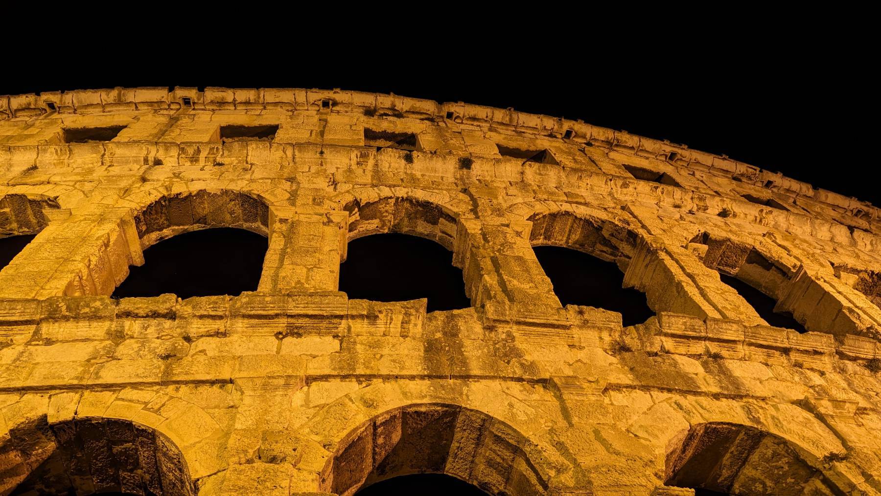 Eine 360Grad Blick in die Arena von Pula bei Nacht