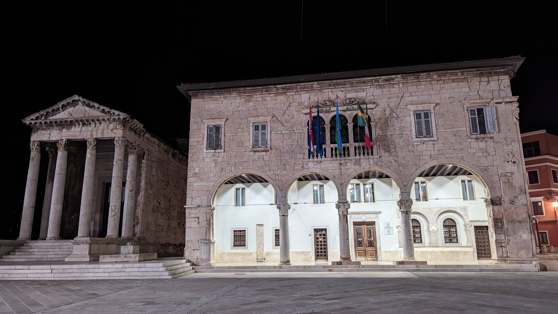 Eine 360Grad Blick in die Arena von Pula bei Nacht