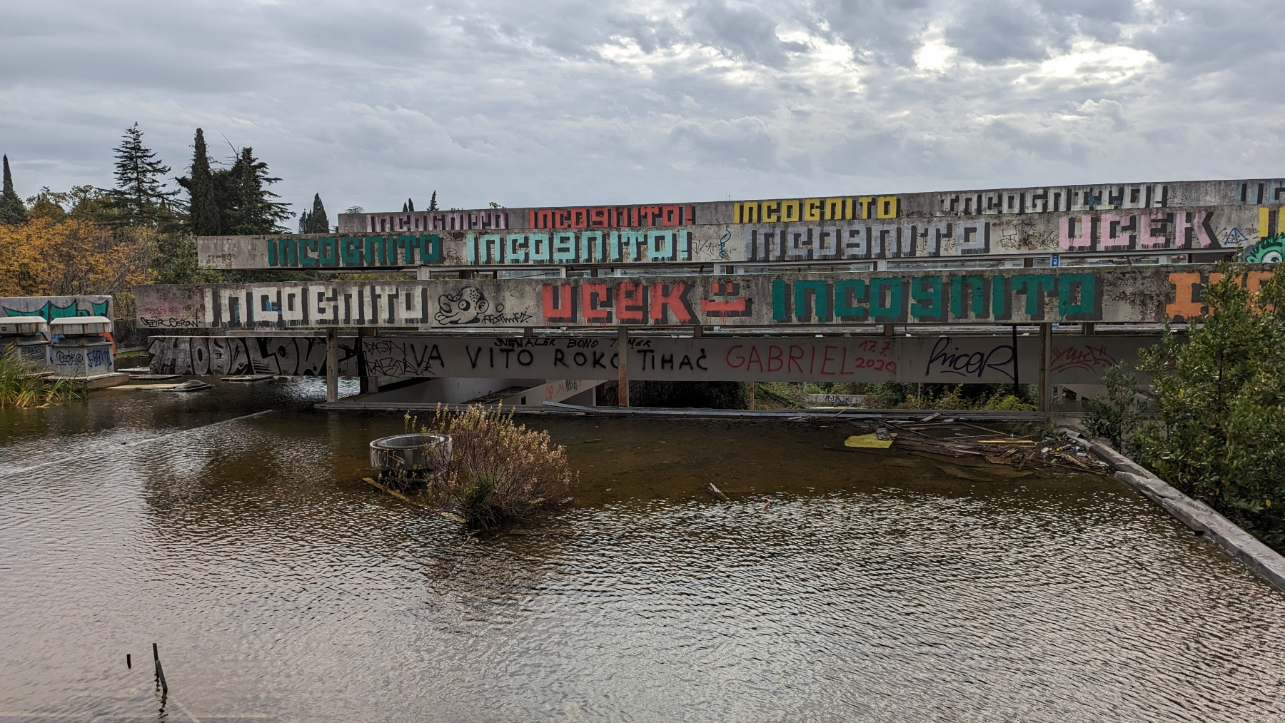 Es wird stürmisch mit 90 km/h starken Böen, daneben gibt es starke Regenfälle. In den wenigen Regenpausen gucken wir uns auf Krk den gleichnamigen Ort und ein Lost Place an, das Haludovo Hotel. Unter Tito eines der luxuriösesten Hotels der Welt und seit über 20 Jahren dem Verfall preisgegeben.