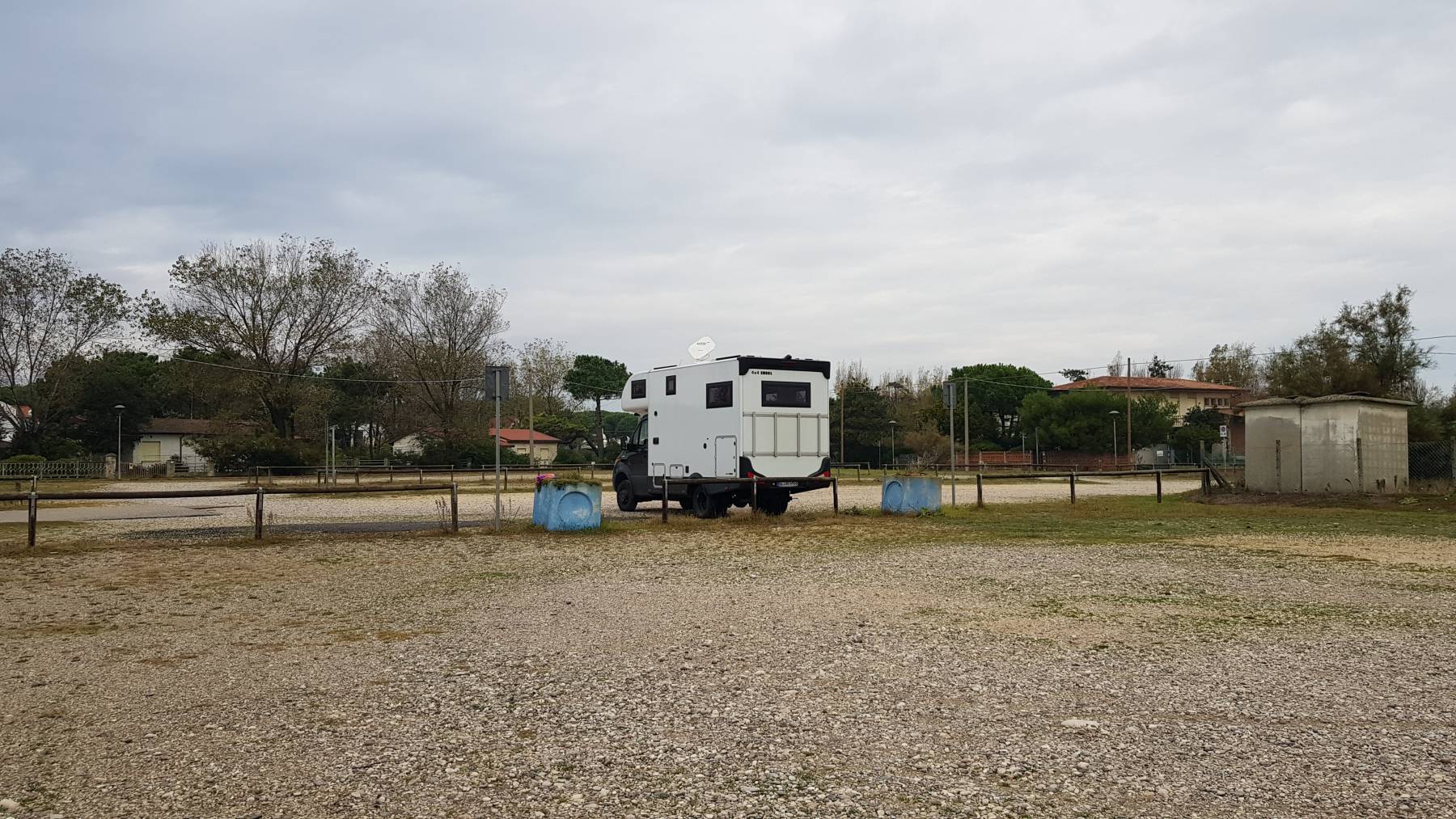 Unser Stellplatz auf der Rosolina-Halbinsel