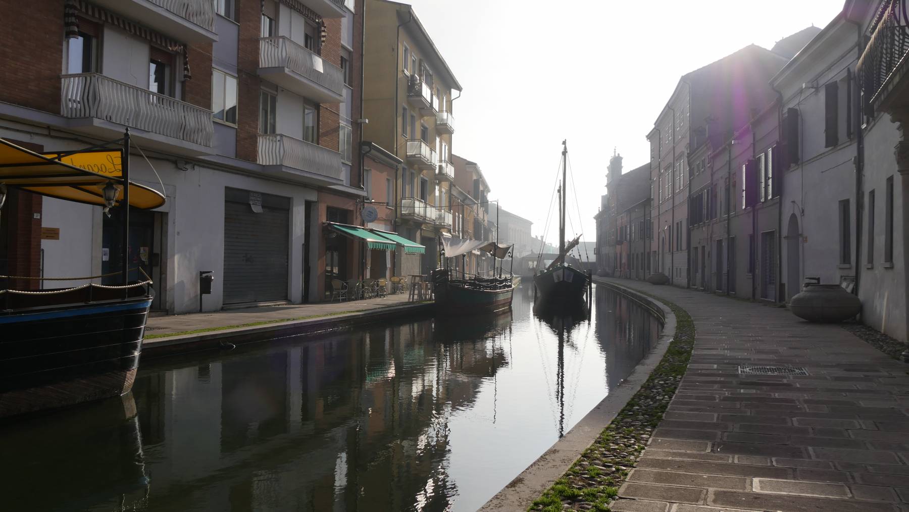 Comacchio, etwas südlich des Podeltas bereits in der Region Emillia-Romagna gelegen, ist eine kleine sehr nette Lagunenstadt. Die Nacht hat es geregnet, nichts besonders nur halt länger. Auch der Dienstag soll den ganzen Tag verregnet sein mit Windböen von 70 km/h. Zuerst dachten wir das in Comacchio auf dem kostenlosen Stellplatz auszusitzen. Regen und Wind? Da empfehlen sich Museen. Also auf nach Ravenna, der Stadt der Mosaike. Die Altstadt wurde komplett zum UNESCO Weltkulturerbe erklärt.