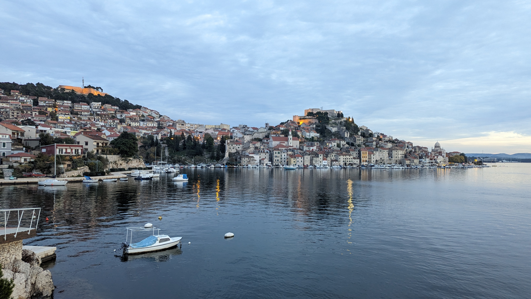 Sibenik. Primosten und Trogir, Orte die wir nicht auf unserer Agenda hatten, statten wir allen einen Besuch ab. Was sie alle gemein haben, dass sie eine schöne Altstadt haben und sehr fotogen am Meer liegen. Nach so vielen Orten mit diesen Merkmalen, wo wir auf dieser Reise bereits waren, fällt es uns mittlerweile schwer, diese im Nachhinein alle noch zu unterscheiden. Was aber alle Orte jetzt hier weiter im Süden auch gemeinsam haben ist, dass die horrenden Parkgebühren für Wohnmobile (€ 6 – 10 für die Stunde und € 30 – 60 für die Nacht) nicht anfallen. Die Schranken sind alle – auch für PKW – geöffnet. So können wir alles in kleinen Etappen vollziehen.