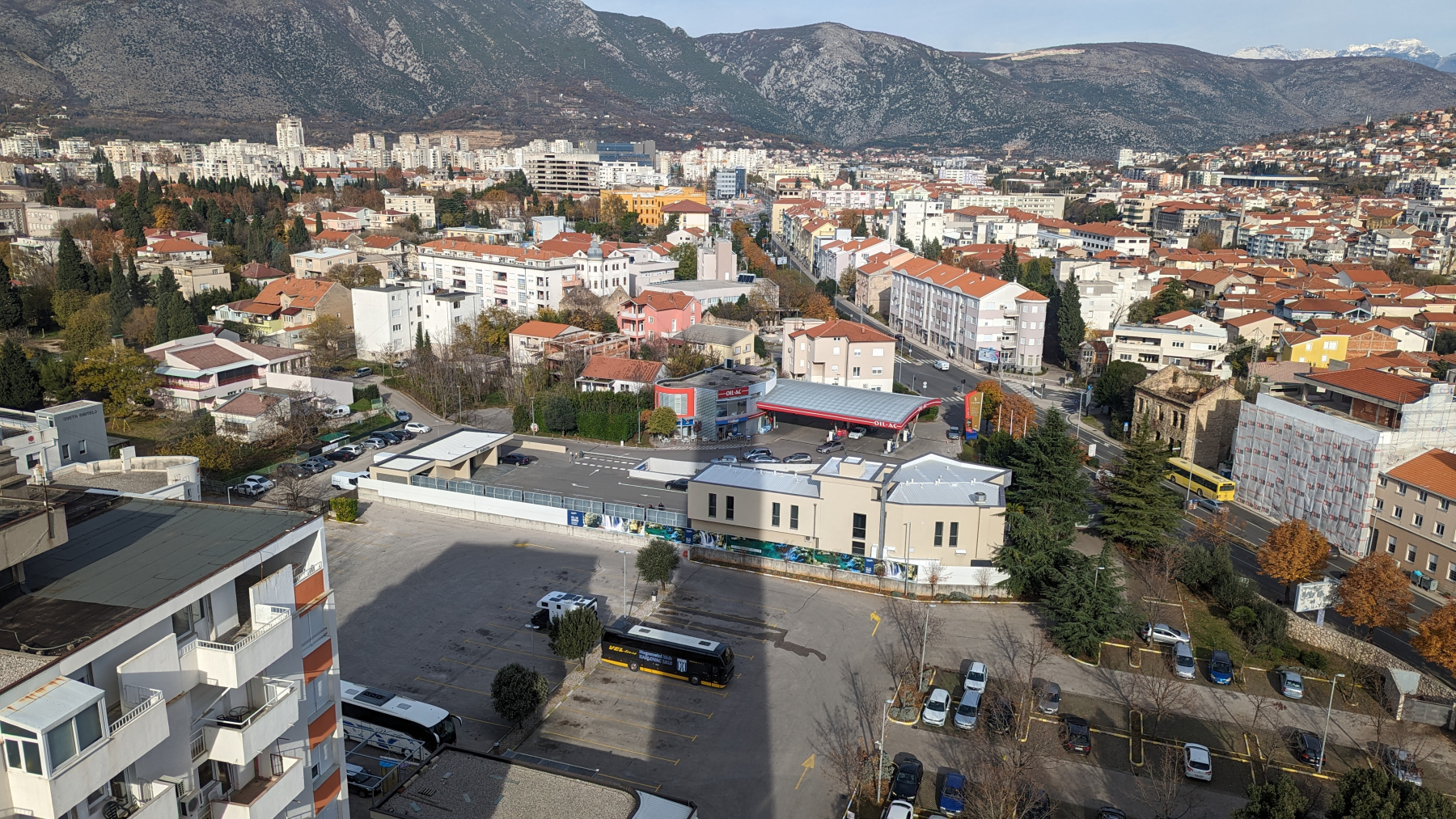 In Mostar wollen wir auf jeden Fall auf einen bewachten Parkplatz, nach allem was wir gelesen haben. Nach einiger Kurverei durch die Stadt mit völlig ungeeigneten oder/und auch zu teuren Plätzen (€ 30,–) können wir am über 100m hohen Campanile für € 10,– die Nacht auf einem großen Busparkplatz stehen bleiben. Nach einer ruhigen Nacht, werden wir um 7 Uhr von lautem Geläute geweckt, was Wunder, wenn man unter einem bedeutenden Glockenturm steht. Die Nacht brachte uns wieder Minusgrade und tagsüber werden es auch nur so um die 8 Grad. Also wieder zurück an die Küste nach Kroatien.