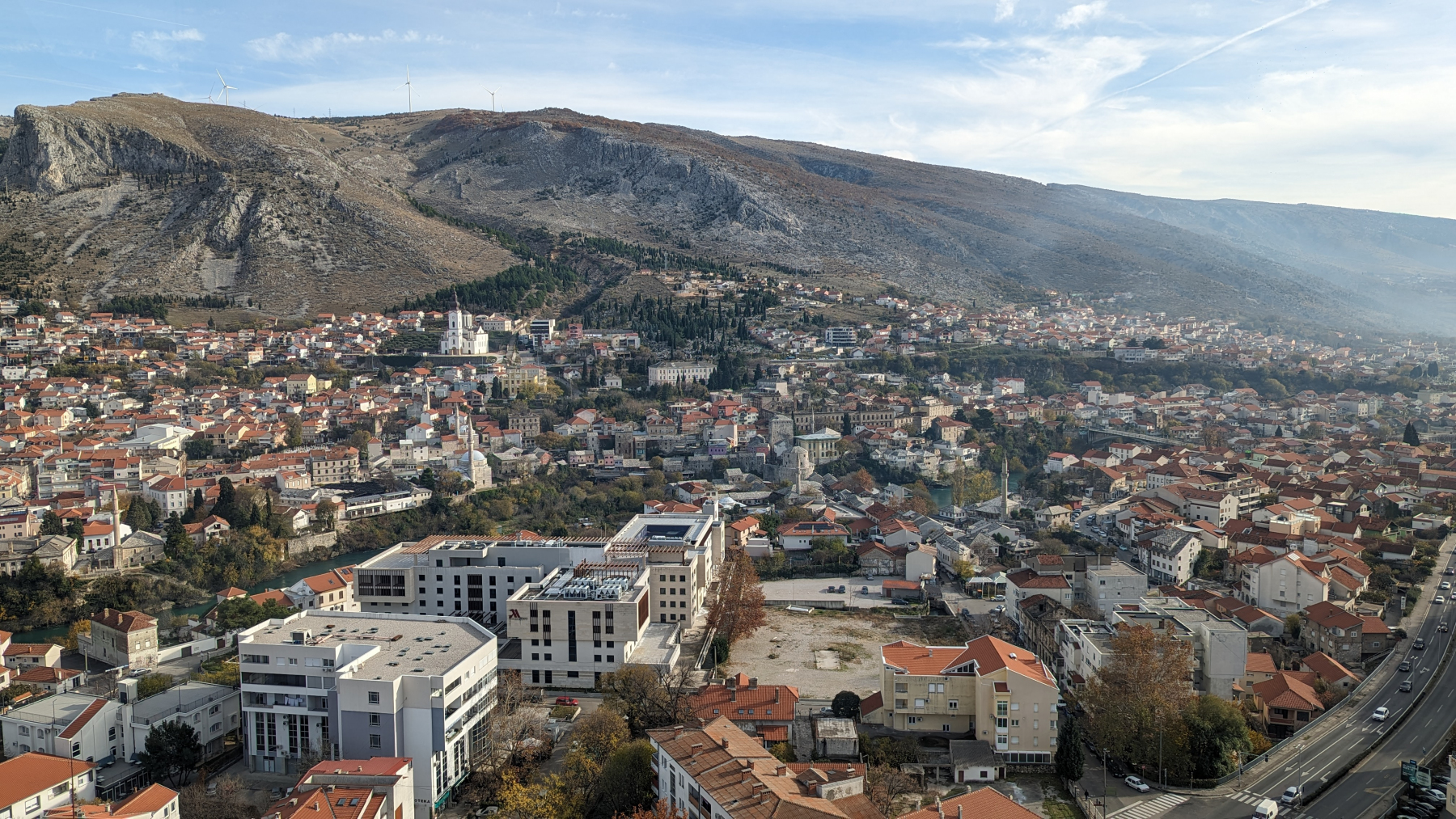 In Mostar wollen wir auf jeden Fall auf einen bewachten Parkplatz, nach allem was wir gelesen haben. Nach einiger Kurverei durch die Stadt mit völlig ungeeigneten oder/und auch zu teuren Plätzen (€ 30,–) können wir am über 100m hohen Campanile für € 10,– die Nacht auf einem großen Busparkplatz stehen bleiben. Nach einer ruhigen Nacht, werden wir um 7 Uhr von lautem Geläute geweckt, was Wunder, wenn man unter einem bedeutenden Glockenturm steht. Die Nacht brachte uns wieder Minusgrade und tagsüber werden es auch nur so um die 8 Grad. Also wieder zurück an die Küste nach Kroatien.