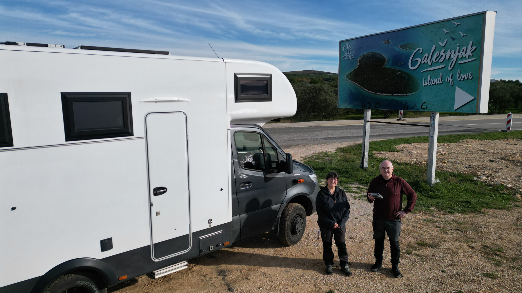 Das haben wir gar nicht erwähnt. Auf Krk erlosch die Außentemperatur Anzeige und die Motorleuchte steht dauerhaft auf orange. Das ganze Recherchieren bringt nur zum Vorschein, dass es irrsinnig viele Ursachen geben könnte und große Folgeschäden möglich wären. Also direkt am Montag zum Mercedes TruckService nach Zadar. Wir werden sehr freundlich aufgenommen und das Fahrzeug wird direkt gecheckt. Die Lösung wird uns auch schnell präsentiert: Eine Maus hat das Kabel durchtrennt und den Stecker zerstört. Der Mechaniker zeigt uns zerstörtes Dämmmaterial und einige Hinterlassenschaften. Die Ersatzteile könnte er in Deutschland bestellen, könnte aber drei Tage dauern. Wir könnten aber ohne Probleme weiterfahren, was wir auch tun. Wir planen die Reparatur dann in Griechenland durchführen zu lassen.