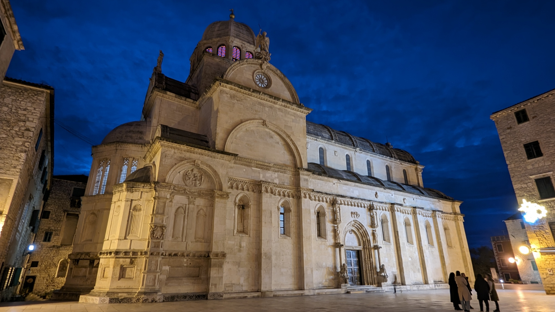 Ein 360GradRundblick in der Altstadt von Sibenik mit City-Halle und der Kathedrale des hl. Jakob