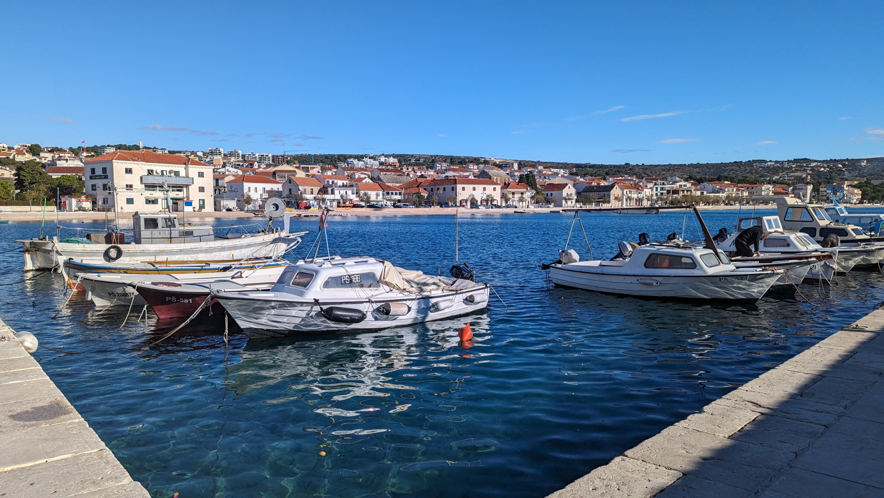 Sibenik. Primosten und Trogir, Orte die wir nicht auf unserer Agenda hatten, statten wir allen einen Besuch ab. Was sie alle gemein haben, dass sie eine schöne Altstadt haben und sehr fotogen am Meer liegen. Nach so vielen Orten mit diesen Merkmalen, wo wir auf dieser Reise bereits waren, fällt es uns mittlerweile schwer, diese im Nachhinein alle noch zu unterscheiden. Was aber alle Orte jetzt hier weiter im Süden auch gemeinsam haben ist, dass die horrenden Parkgebühren für Wohnmobile (€ 6 – 10 für die Stunde und € 30 – 60 für die Nacht) nicht anfallen. Die Schranken sind alle – auch für PKW – geöffnet. So können wir alles in kleinen Etappen vollziehen.