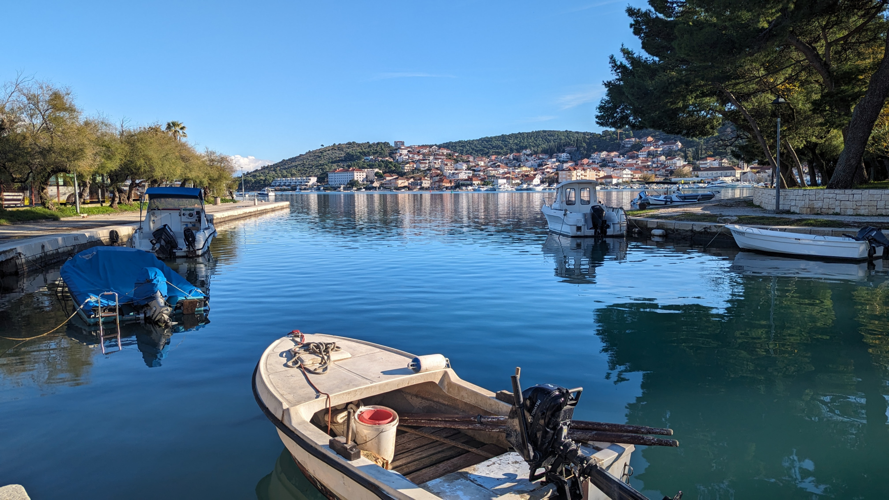 Sibenik. Primosten und Trogir, Orte die wir nicht auf unserer Agenda hatten, statten wir allen einen Besuch ab. Was sie alle gemein haben, dass sie eine schöne Altstadt haben und sehr fotogen am Meer liegen. Nach so vielen Orten mit diesen Merkmalen, wo wir auf dieser Reise bereits waren, fällt es uns mittlerweile schwer, diese im Nachhinein alle noch zu unterscheiden. Was aber alle Orte jetzt hier weiter im Süden auch gemeinsam haben ist, dass die horrenden Parkgebühren für Wohnmobile (€ 6 – 10 für die Stunde und € 30 – 60 für die Nacht) nicht anfallen. Die Schranken sind alle – auch für PKW – geöffnet. So können wir alles in kleinen Etappen vollziehen.